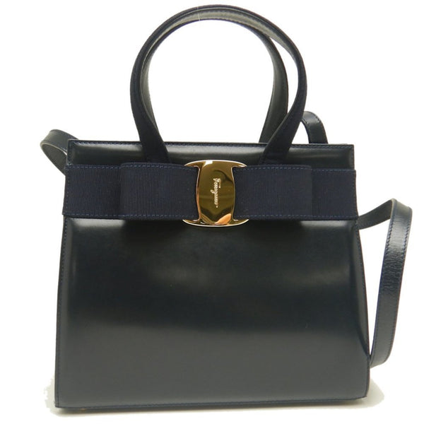 Salvatore Ferragamo BA21 4178 Vara Leather Handbag in Navy Blue (Product Code: 252948)