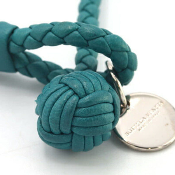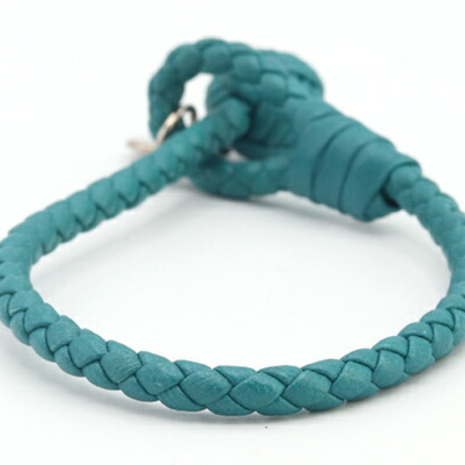 Bottega Veneta Intrecciato Bracelet 113546 Blue-Green Leather Bangle for Men and Women