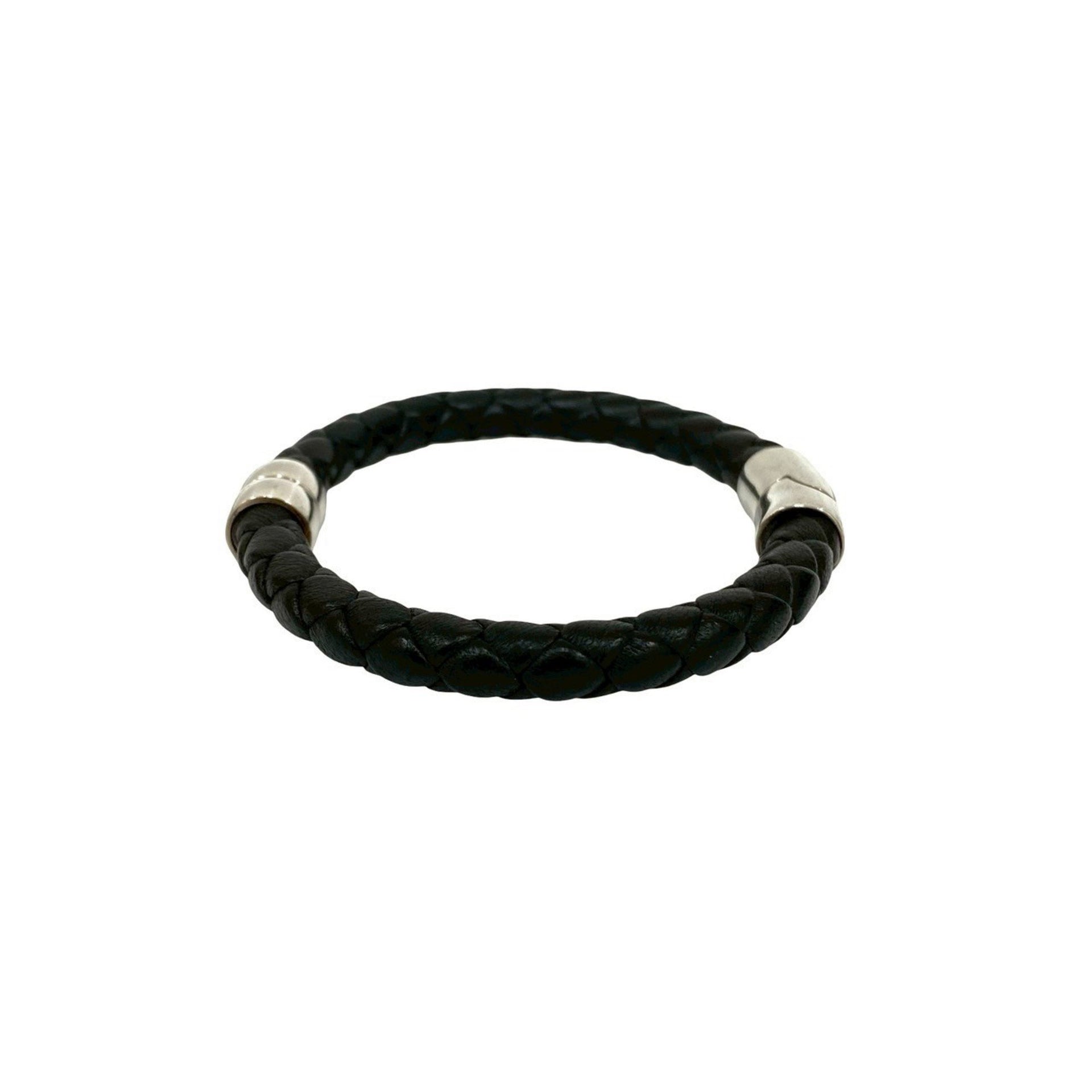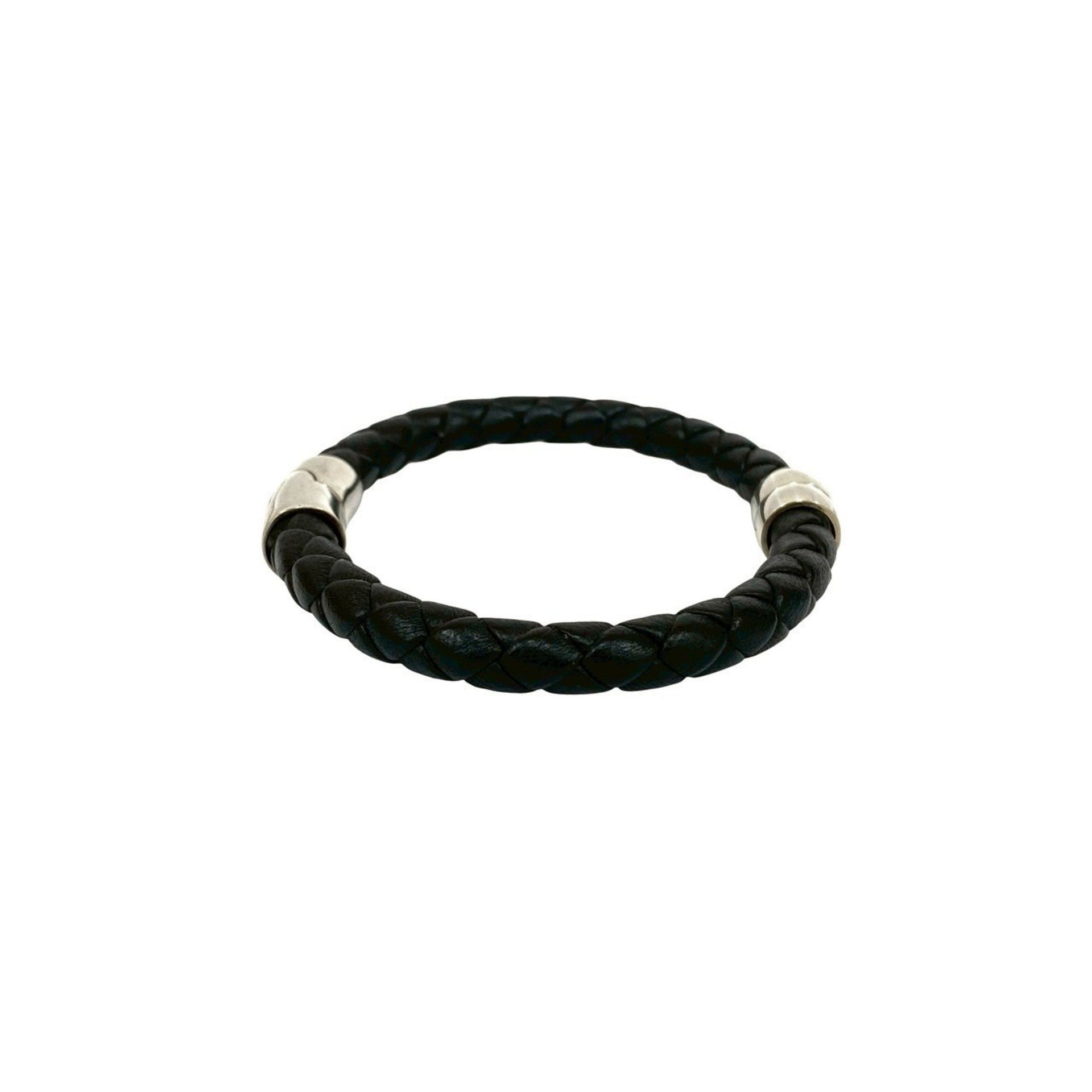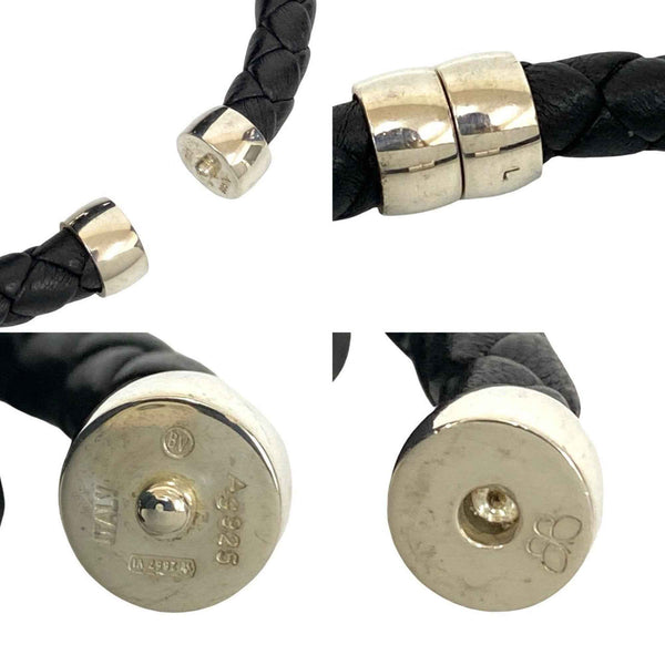 BOTTEGA VENETA Intrecciato Sterling Silver 925 Leather Bracelet Bangle in Black and Silver, 46167