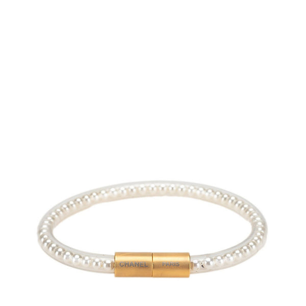 Chanel Magnetic Tube Bracelet, Gold, Clear Vinyl, Plated with Faux Pearls, Women\'s, CHANEL