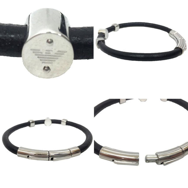 Emporio Armani EMPORIO ARMANI Leather Bracelet Men\'s Black x Silver