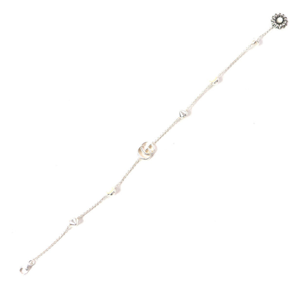 GUCCI 527393 Double G Mother-of-Pearl Flower Chain Bracelet, SV925 Silver, White, Size 17, Includes Dust Bag, Made in Italy, Weight 5.56g, Women\'s