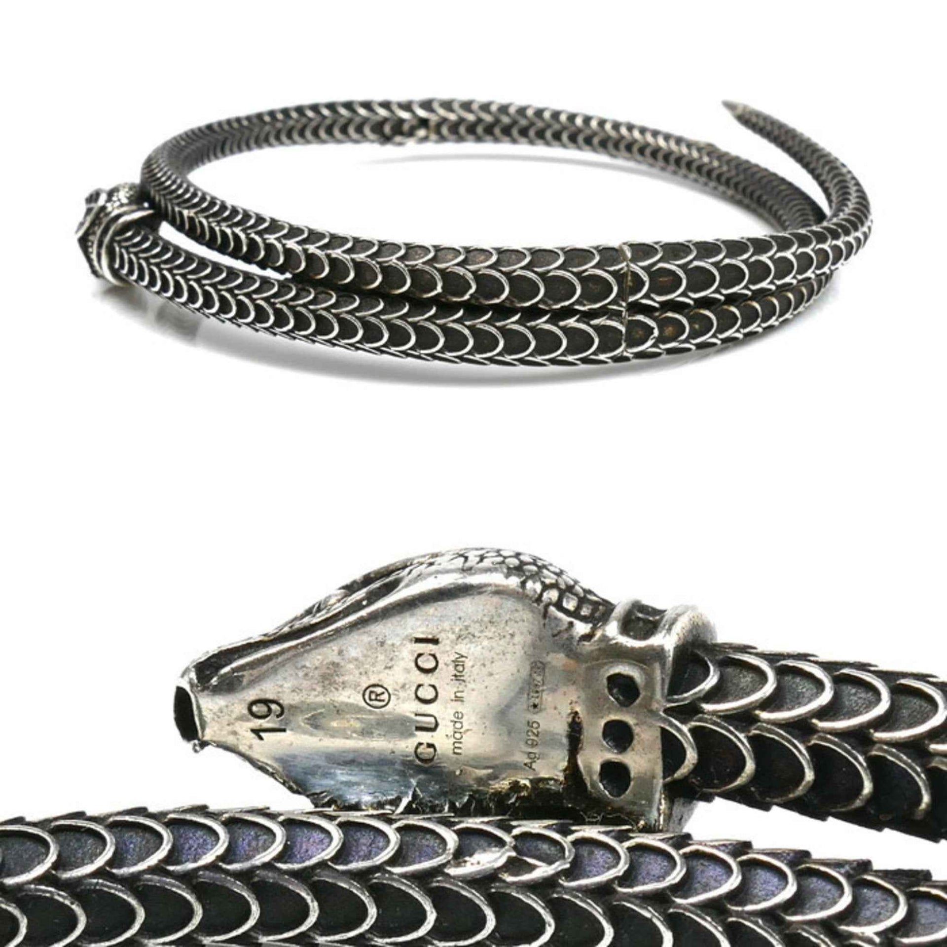 GUCCI Gucci Silver 925 Snake Bangle Size 19 47.7g Men\'s