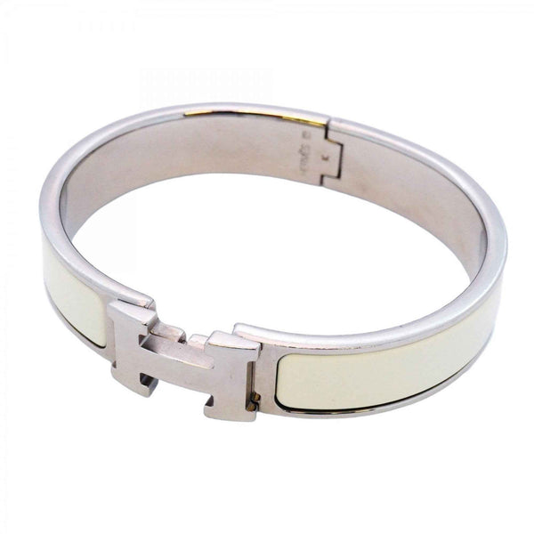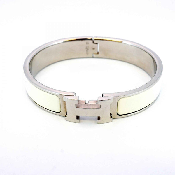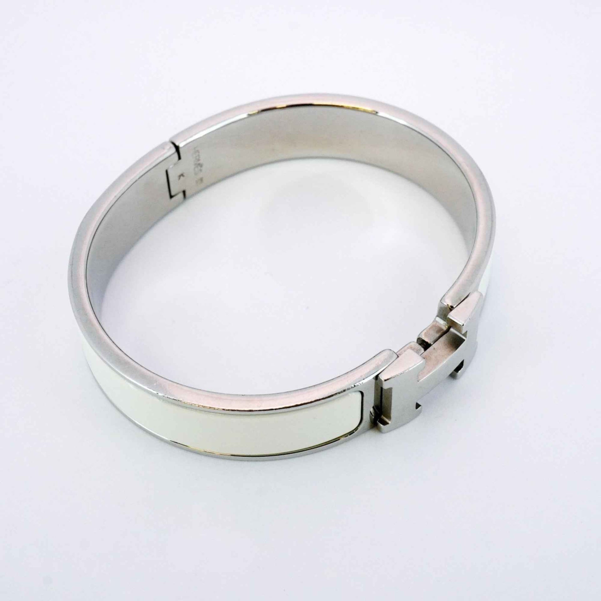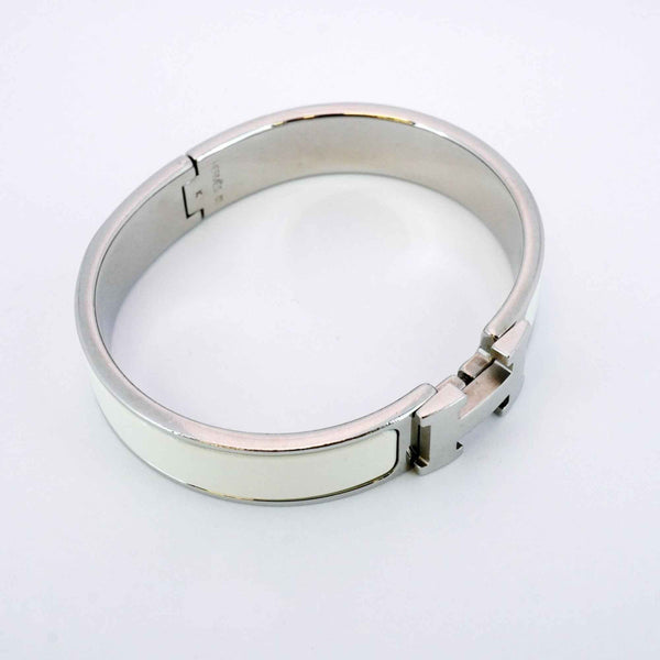 Hermes Click Cluck PM Bangle in Metal and White for Women