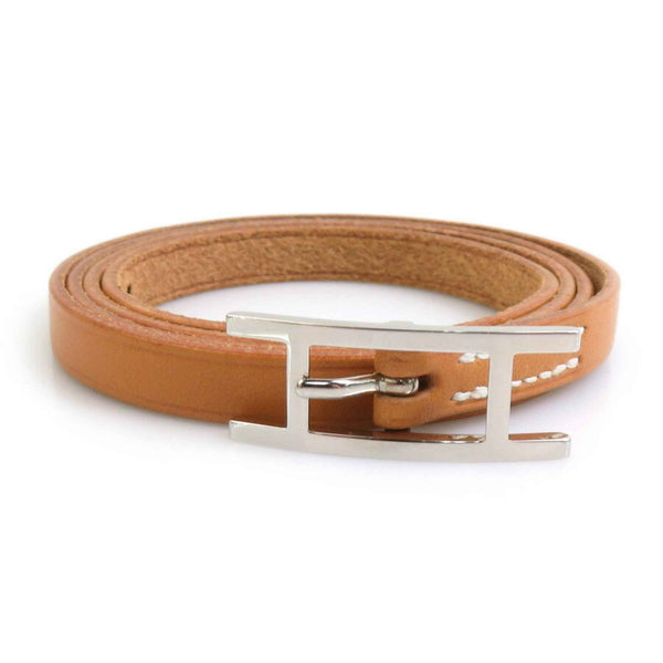 Hermes Hermès Api Leather and Metal Bracelet in Brown Silver for Men Women (e60930a)