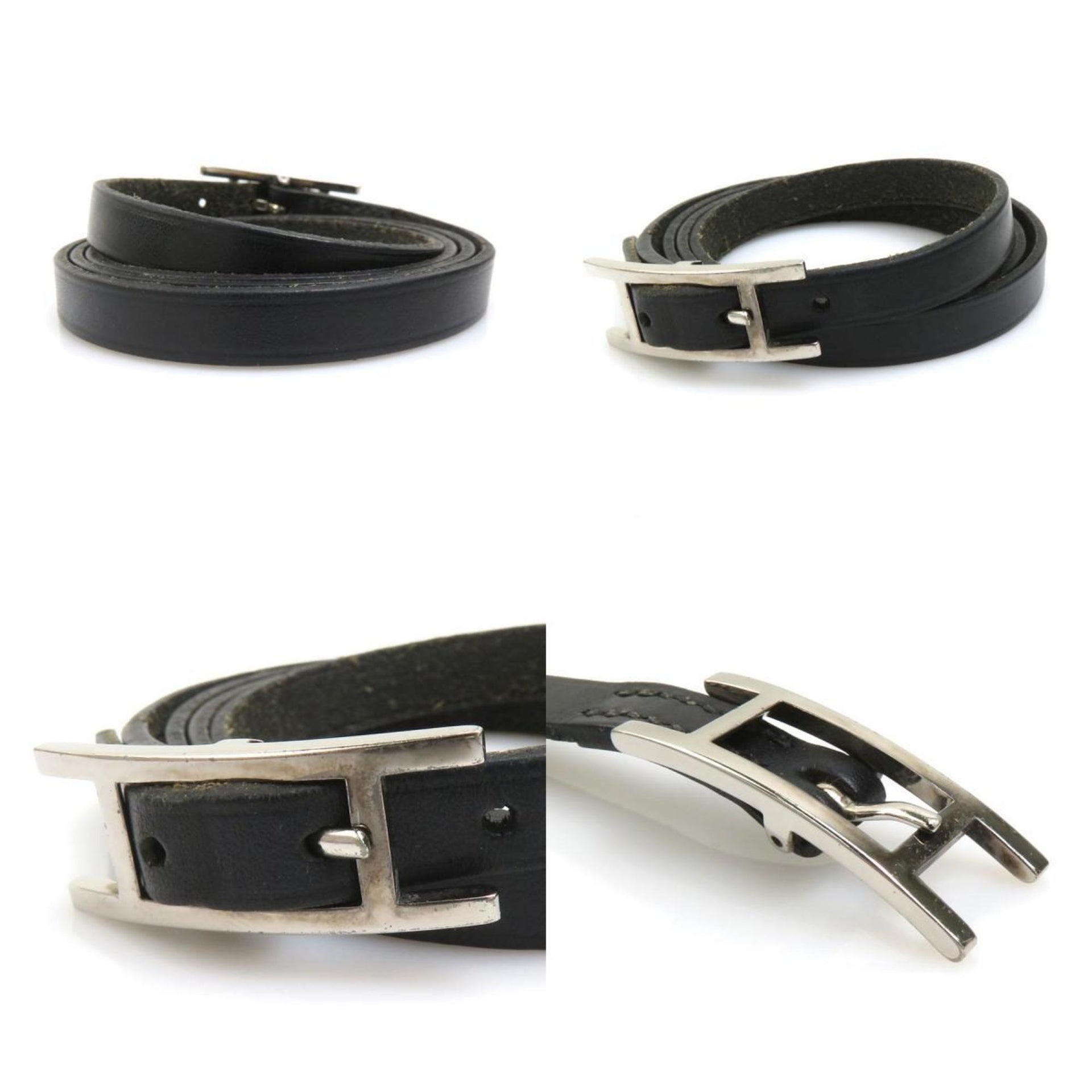Hermes Hermès Api Leather Bracelet in Black and Silver for Women (e60669a)