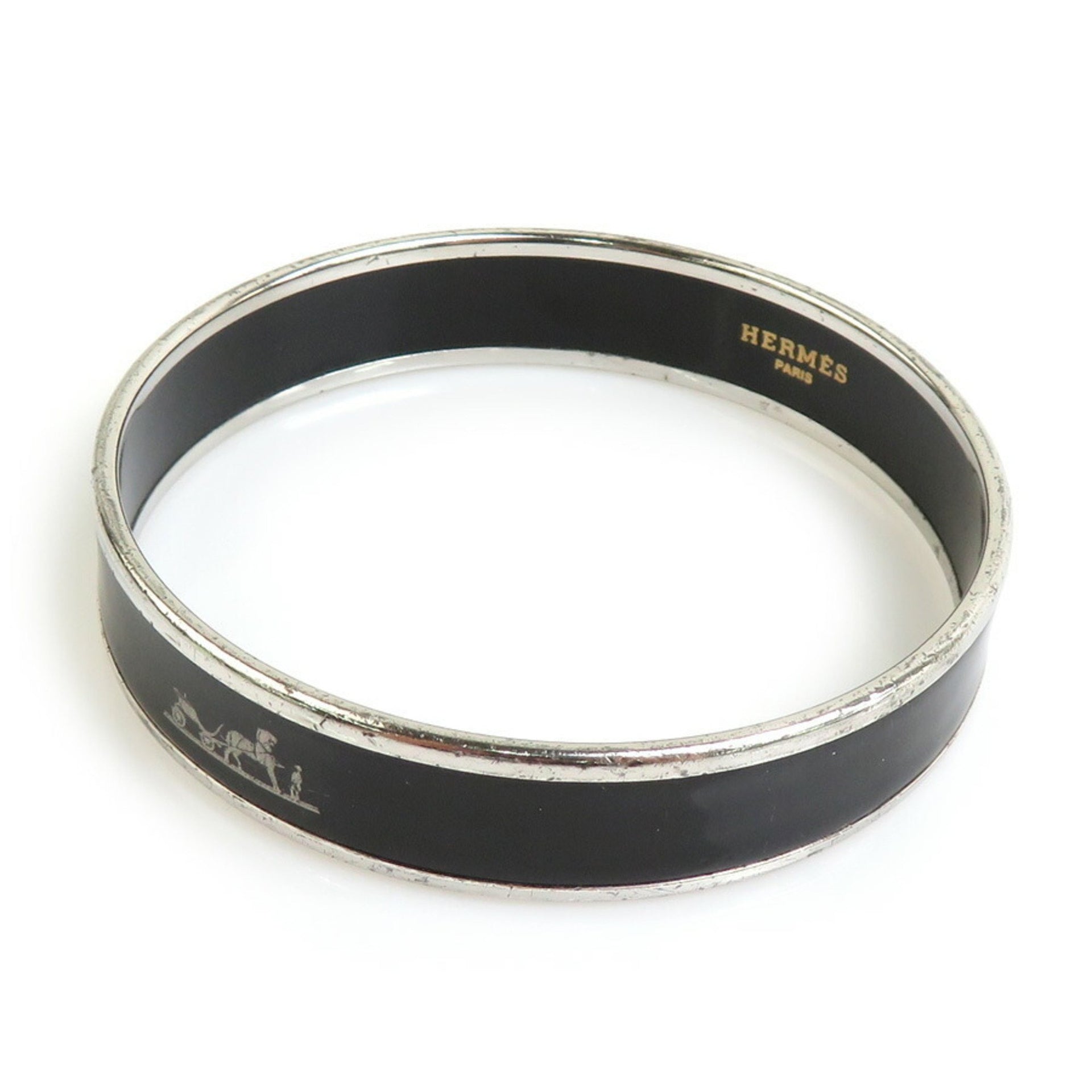 Hermès HERMES bangle bracelet in enamel, metal, silver and black, women\'s, e60705a