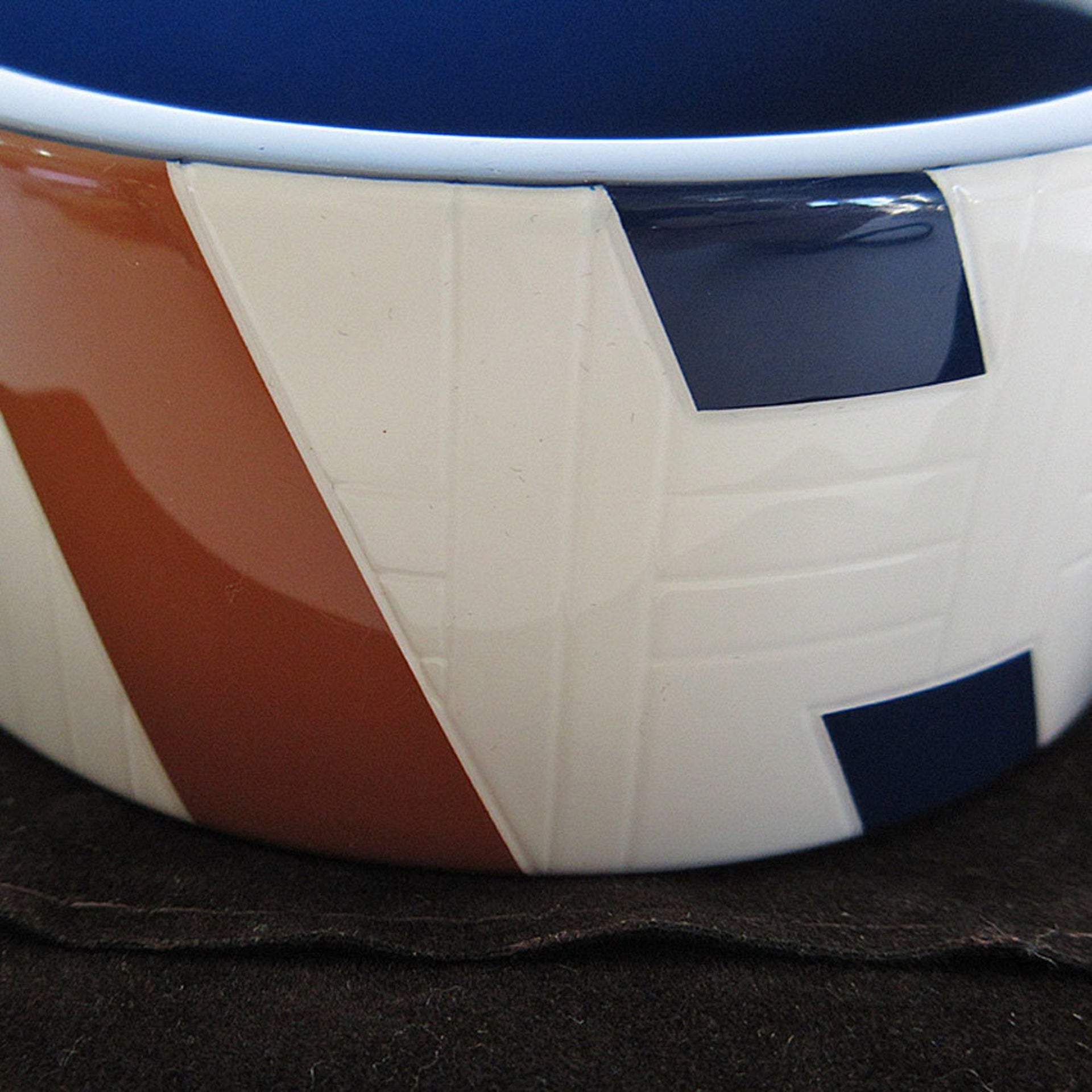 Hermes Hermès bangle bracelet in lacquered wood, dark blue, off-white, and brown. Men\'s women\'s sizes s0673g.