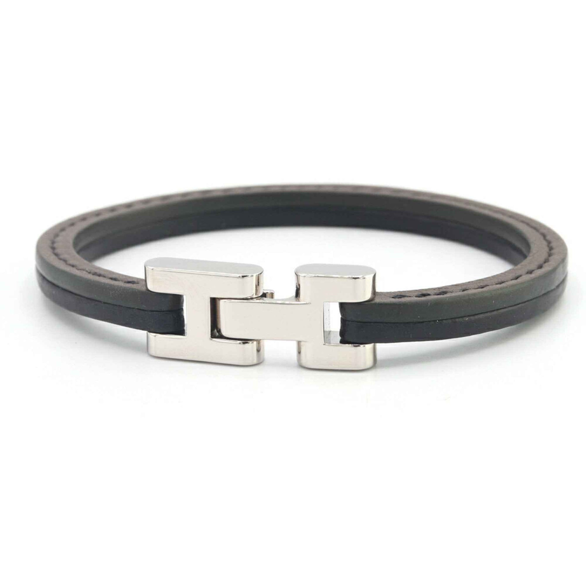 Hermes Hermès Palomino Bracelet in Black, Dark Khaki, and Gray Leather Bangle for Men Women