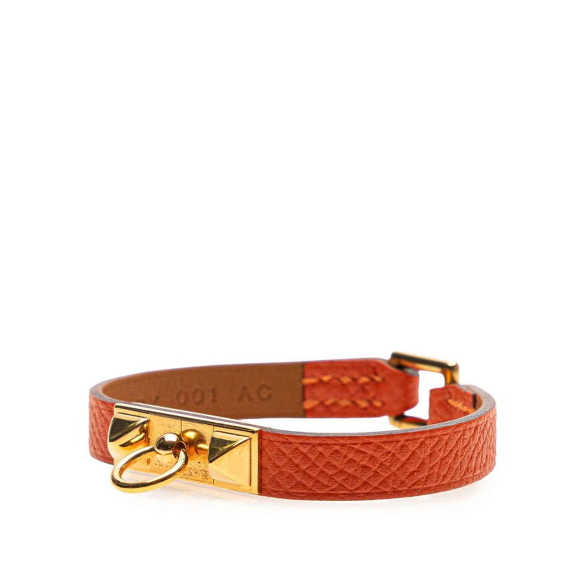 Hermes Hermès Rival Mini Bracelet in Orange Gold Leather and Metal for Women