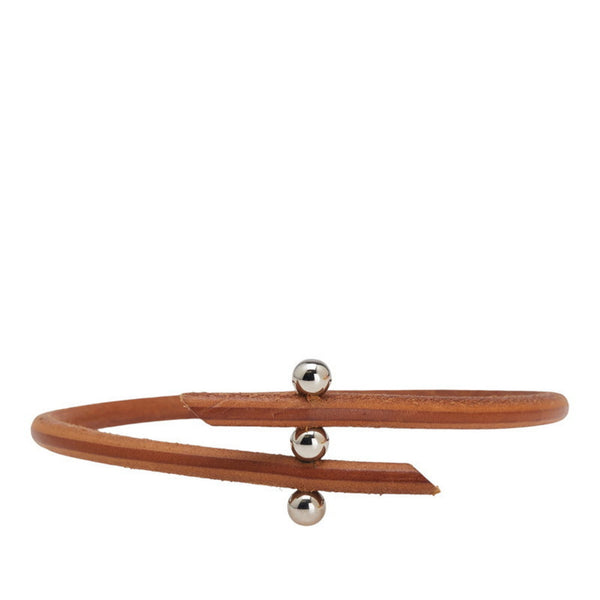 Hermes Hermès Roulette Hill Bracelet, 2-Row, Brown and Silver Leather Metal, Women\'s