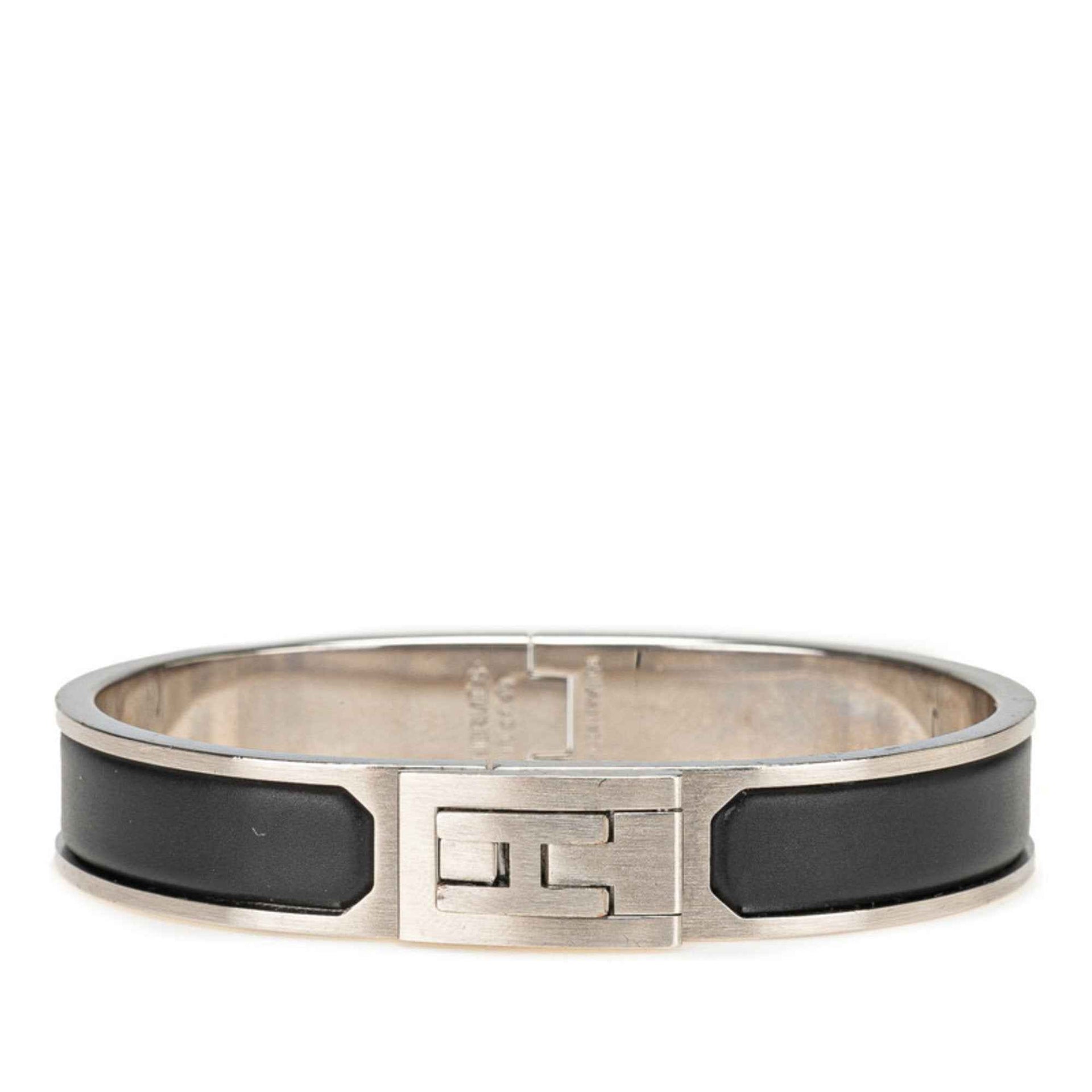 Hermes Jet Bangle Silver Black Metal Women\'s HERMES