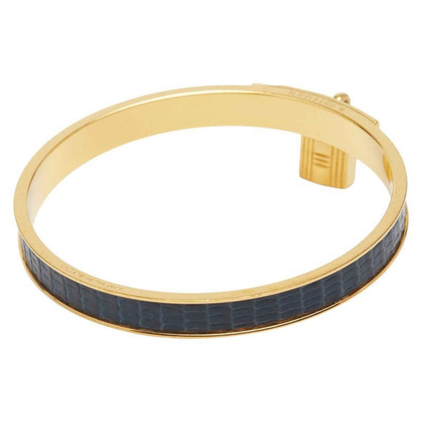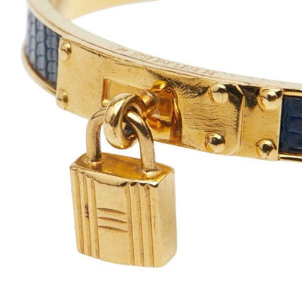 Hermes Kelly Bangle with Cadena Motif, Gold and Navy Plated Leather, Women\'s, HERMES