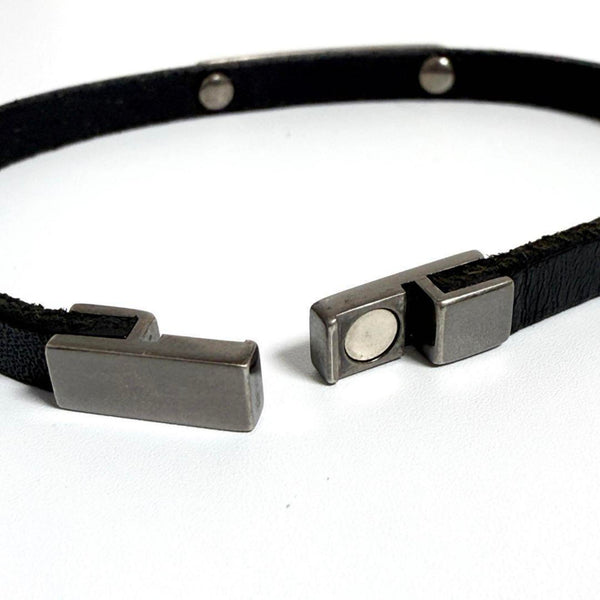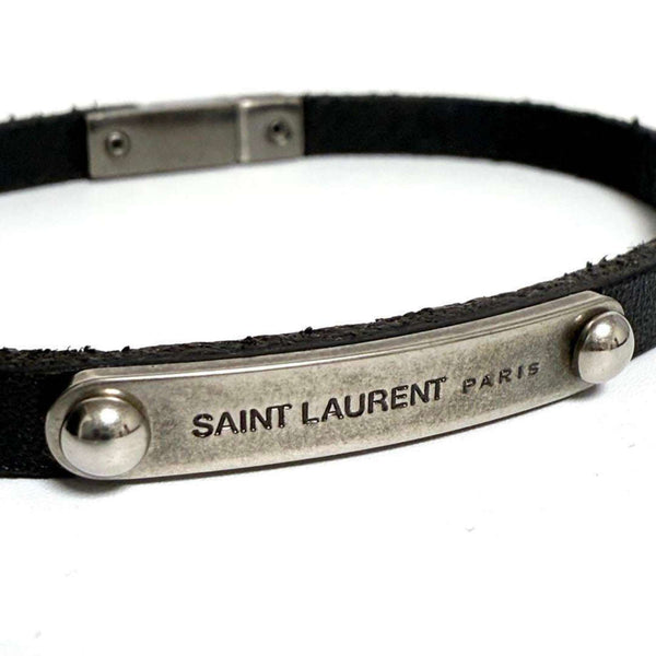 Yves Saint Laurent Saint Laurent Paris Men\'s Leather ID Plate Bracelet