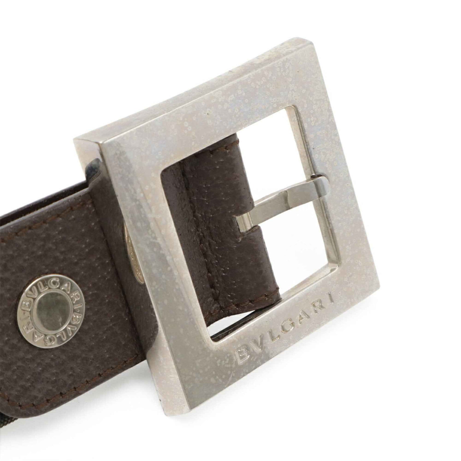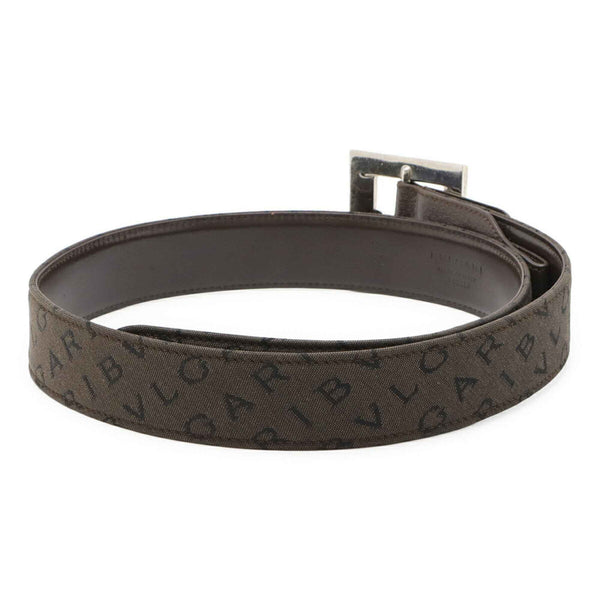 BVLGARI Mania Square Buckle Belt, Canvas and Leather, Dark Brown, Size 42/105, Dimensions: Approx. 77.5cm, Pre-cut