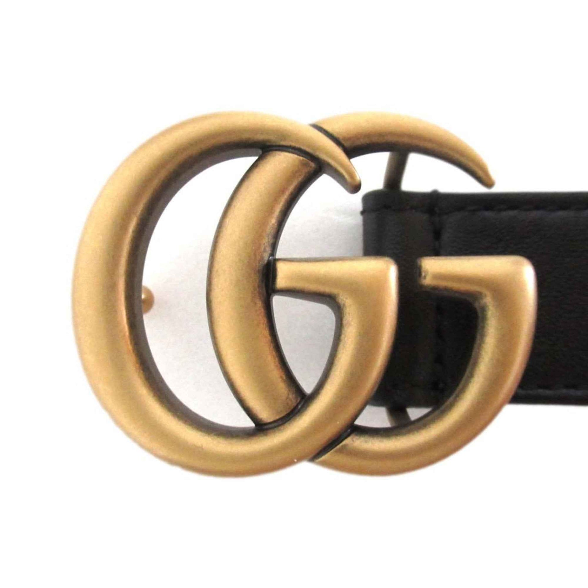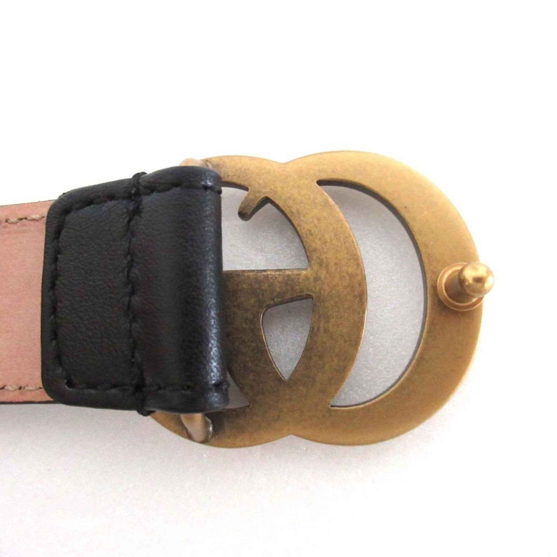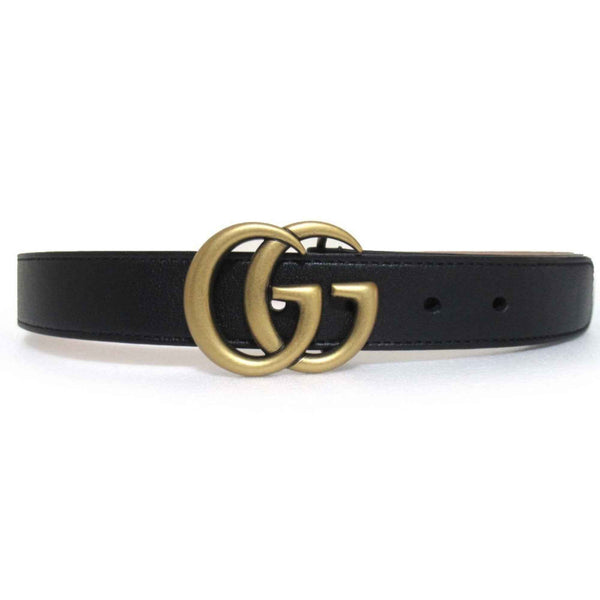 GUCCI Children\'s Double G Marmont Leather Belt with Ribbon, Size L, Black and Gold Hardware, 432707