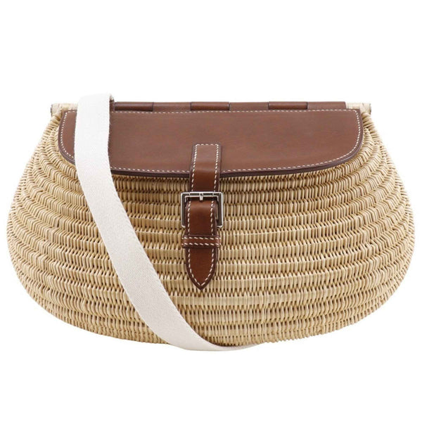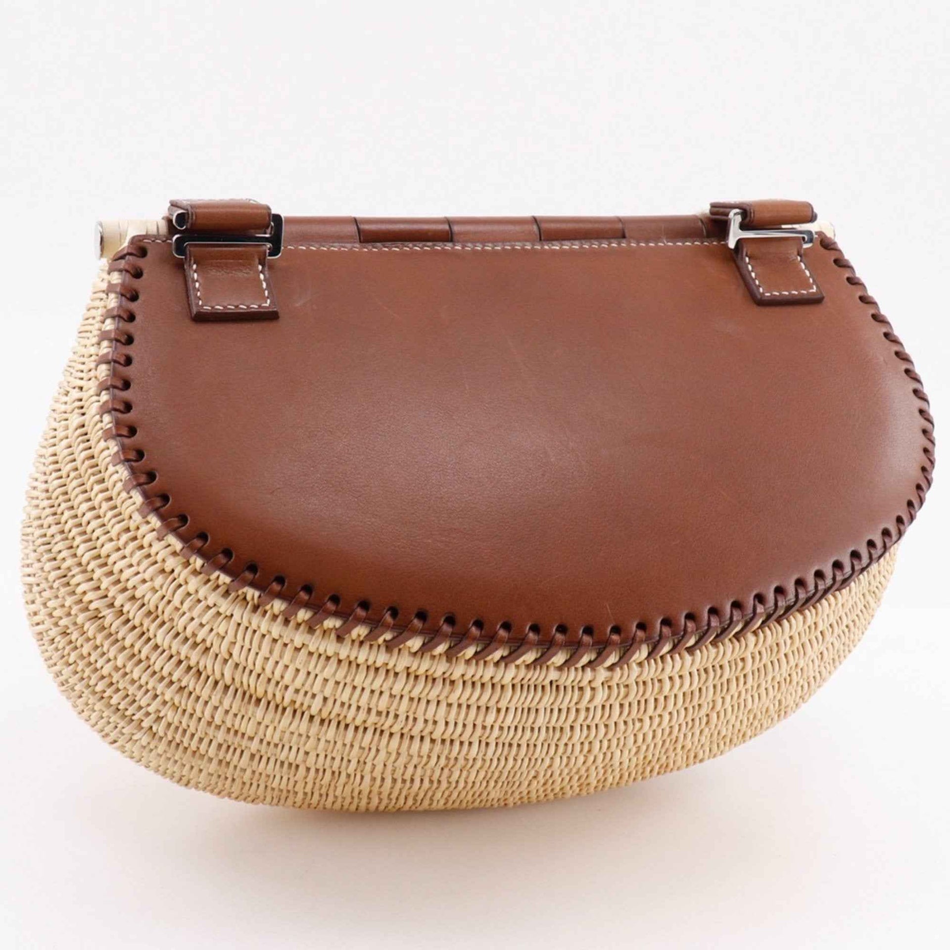 Hermes Hermès Fishing Basket Shoulder Bag, Leather and Willow, Brown, 2-Way, Belt Clasp, Women\'s, I171625011
