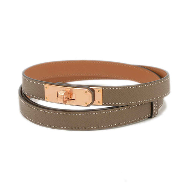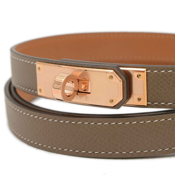Hermes Hermès Kelly Belt, Epsom Etoupe, Rose Gold Hardware, Double Stamp, BP