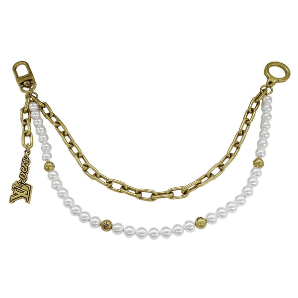 Louis Vuitton Women\'s Metal and Glass Pearl Bag Charm Chain/Belt Charm, Gold White, M01689 AK3274
