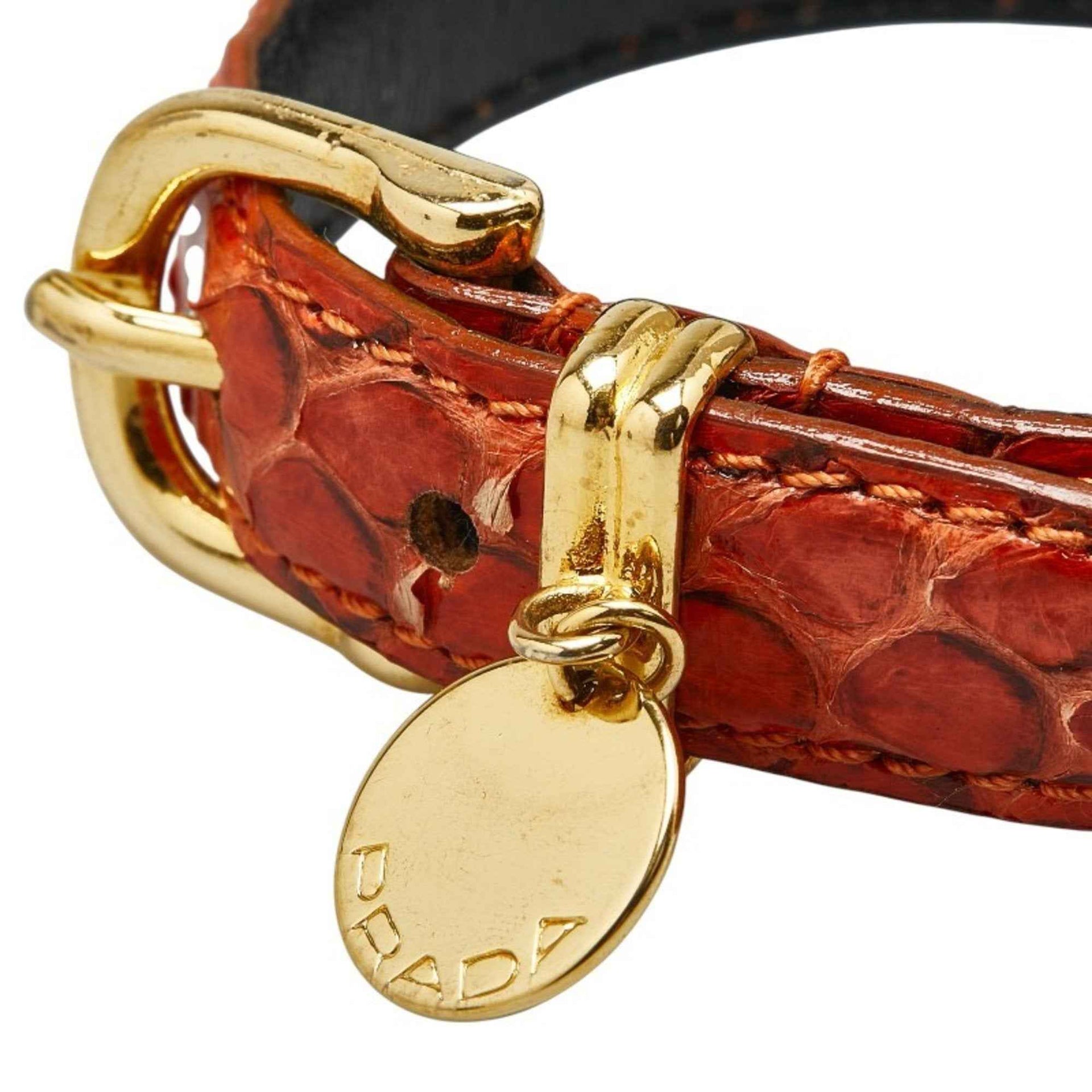 Prada Python Embossed Belt Bracelet in Red Leather for Women