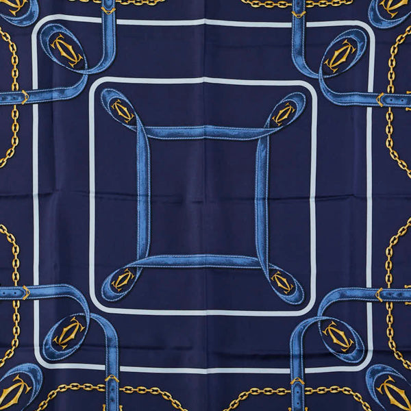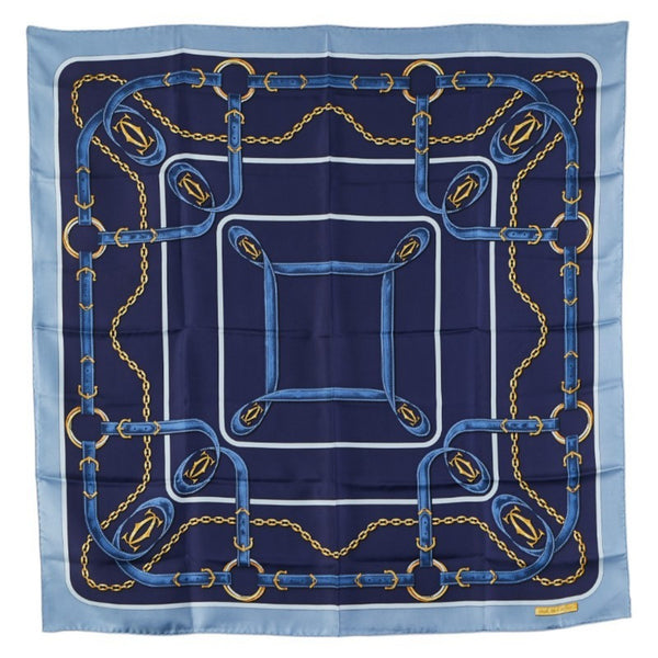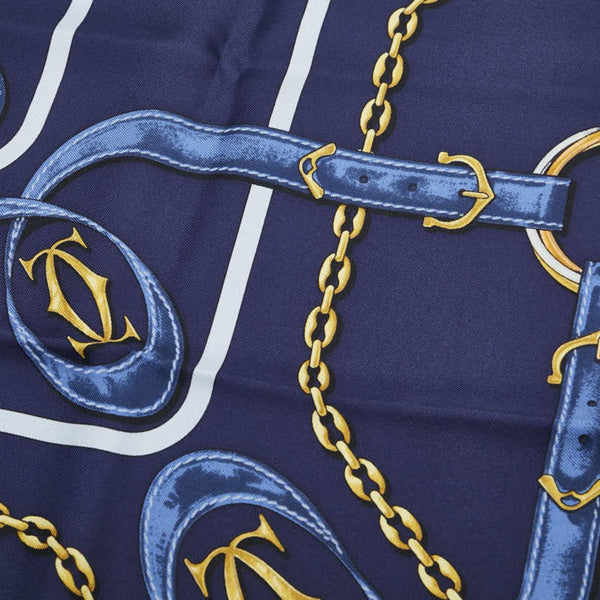 Cartier Belt Chain Scarf Muffler Navy Blue Silk Women\'s CARTIER