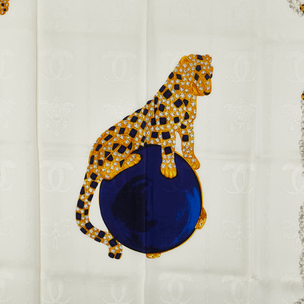 Cartier Must de Ball-Riding Panthère Scarf, Navy and White Silk, Women\'s
