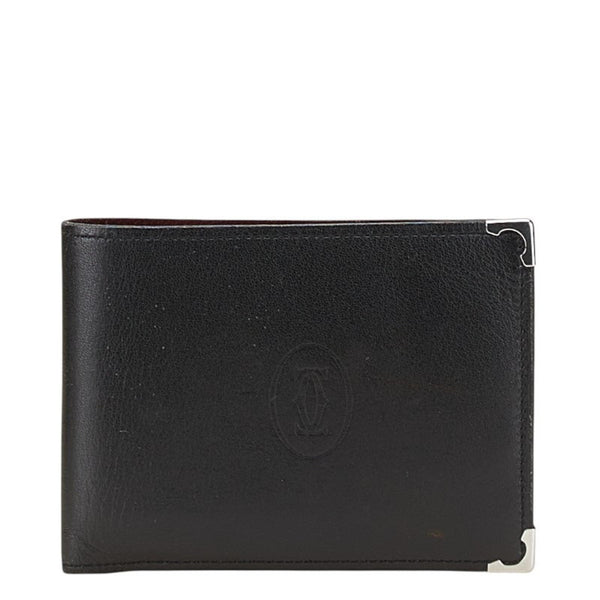Cartier Must Line Bifold Wallet Black Leather Men\'s CARTIER