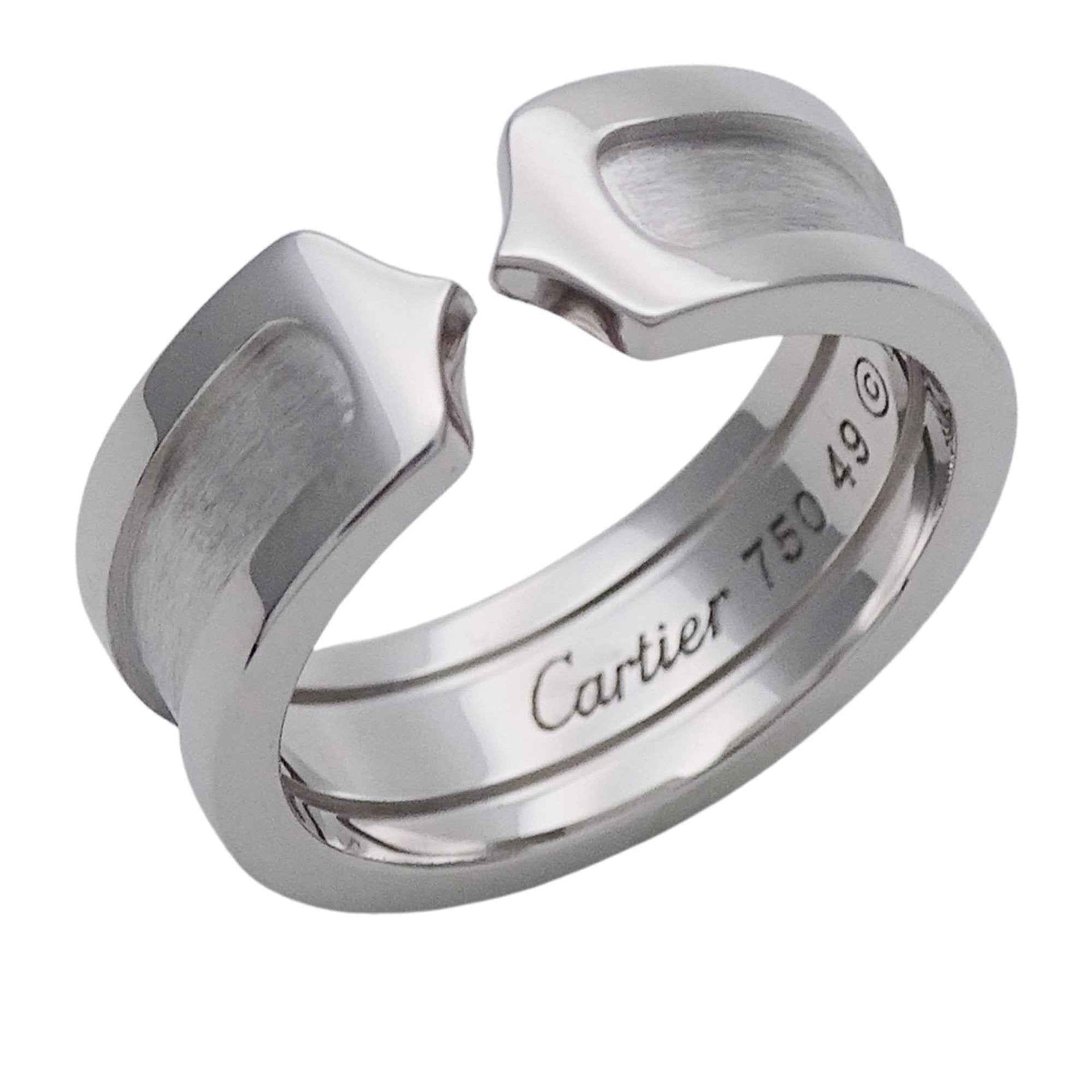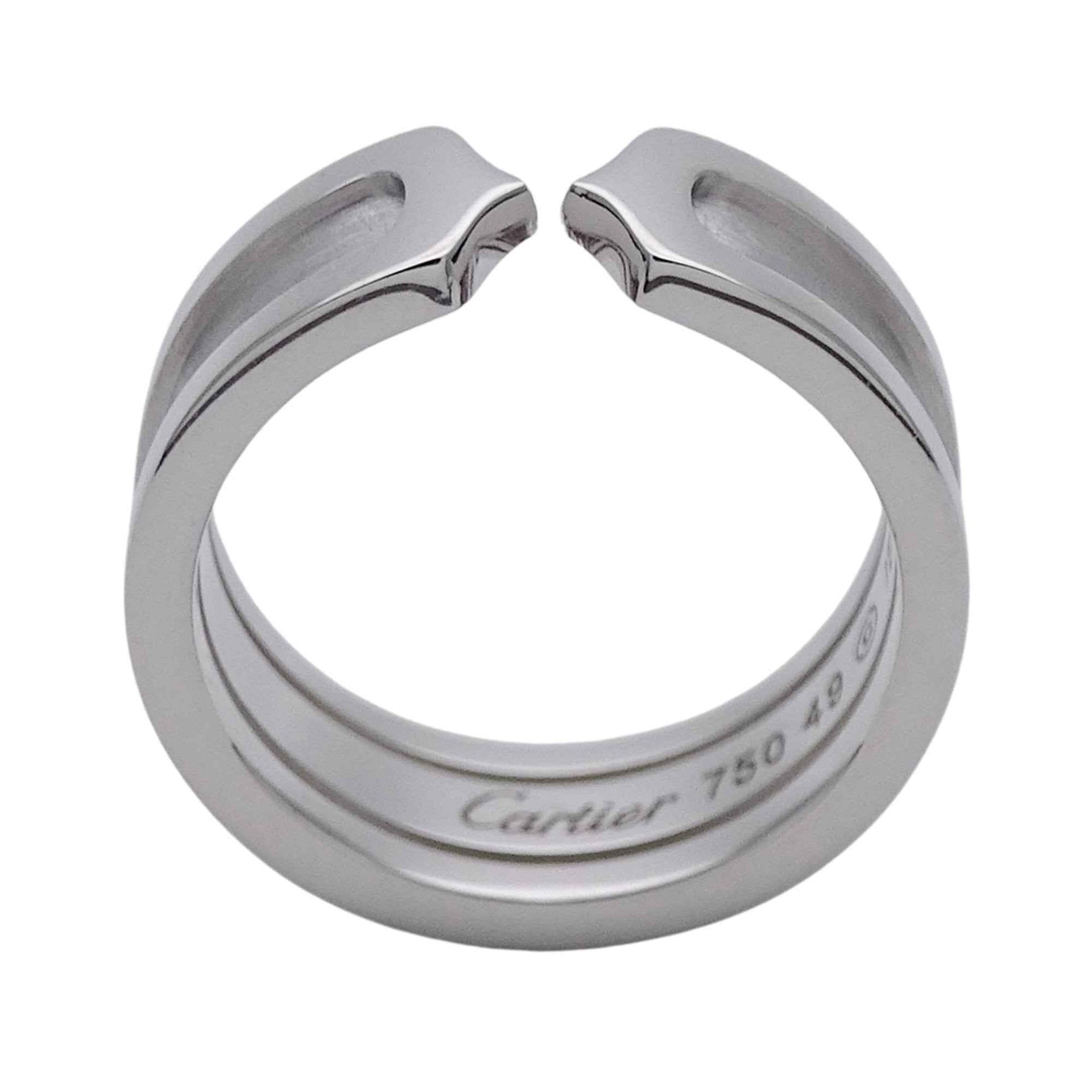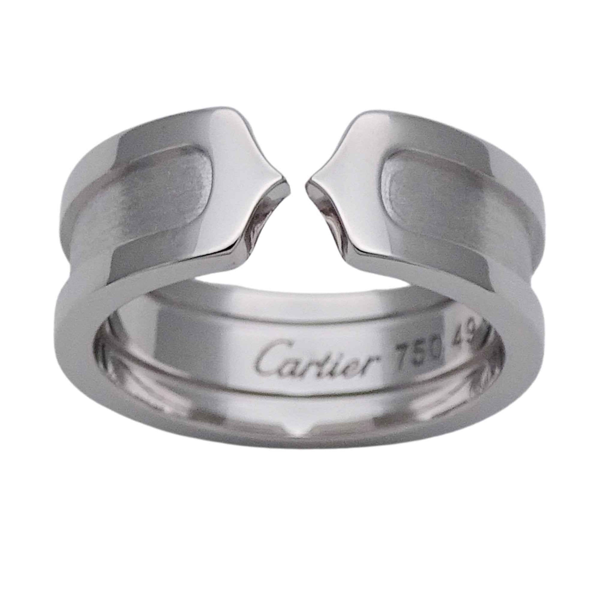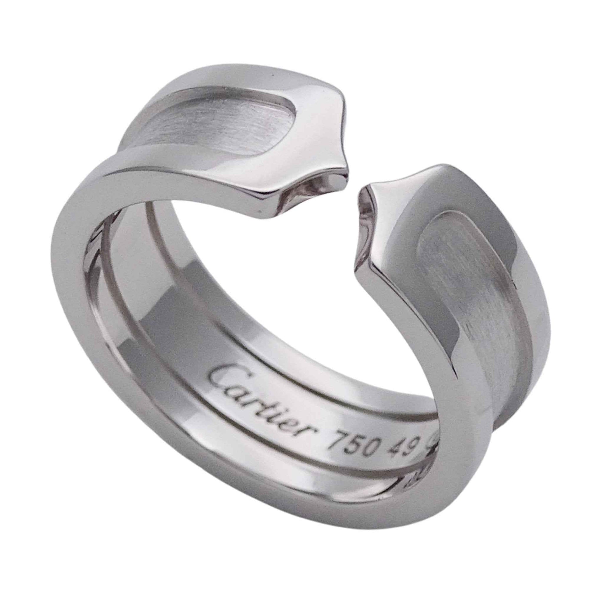 Cartier ring for women, brand name ring, 750WG C2 white gold, #49, approximately size 9, polished jewelry.