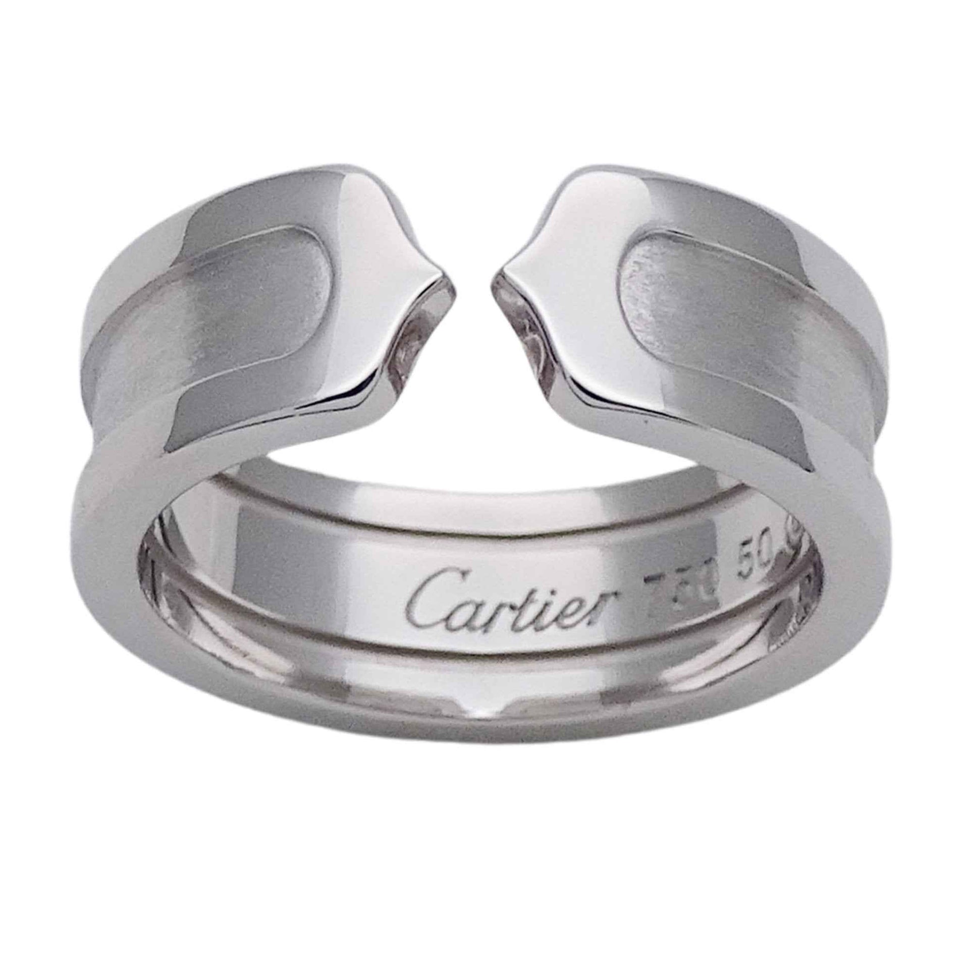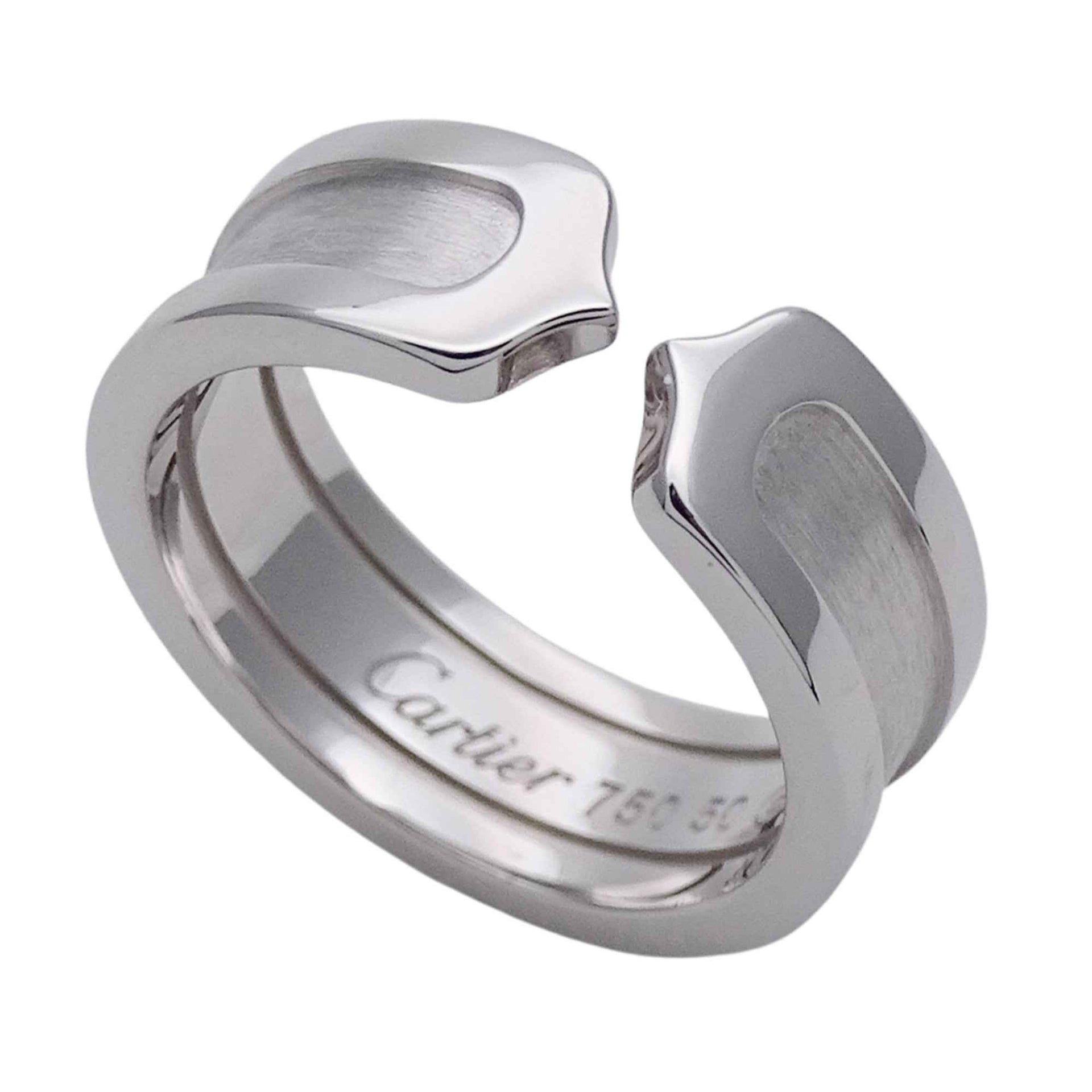 Cartier ring for women, brand name ring, 750WG C2 white gold, #50, approximately size 10, polished jewelry.