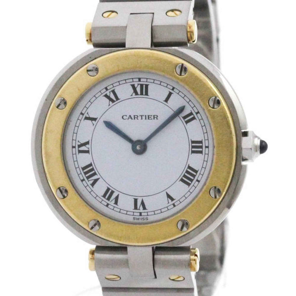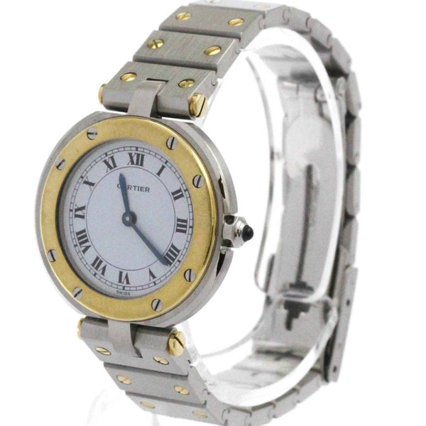 CARTIER Santos Round 18K Gold Steel Quartz Ladies Watch Polished