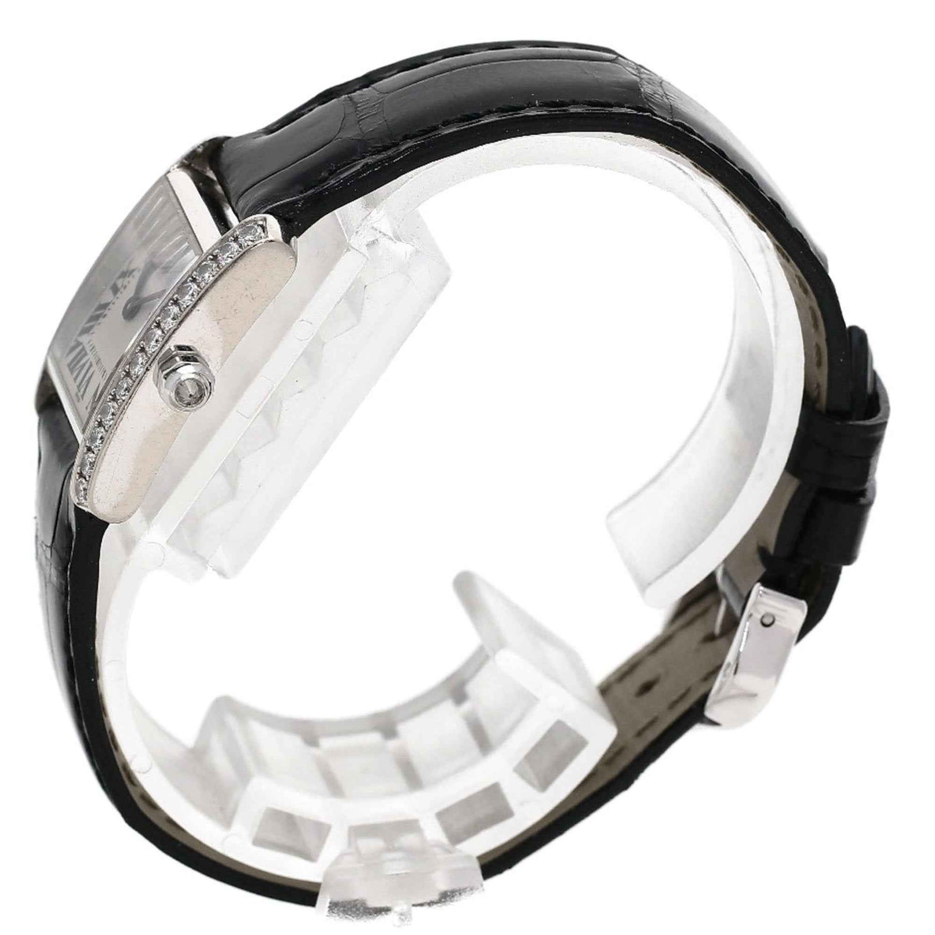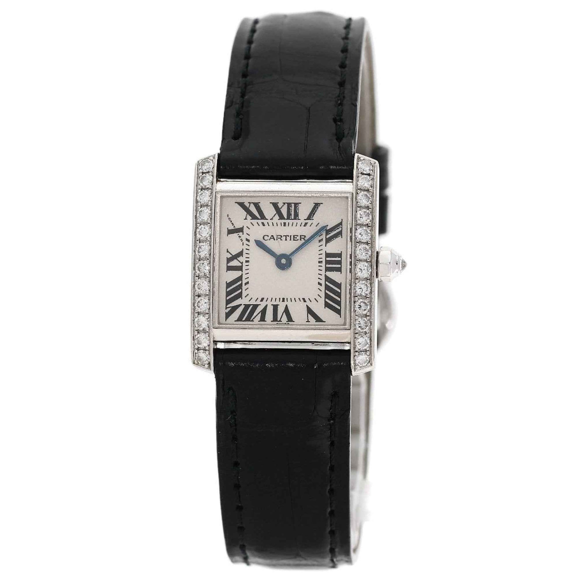 Cartier WE1002S3 Tank Française SM Watch with Genuine Diamond Bezel, 18K White Gold/Leather, Women\'s