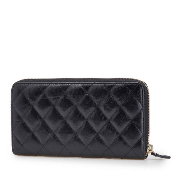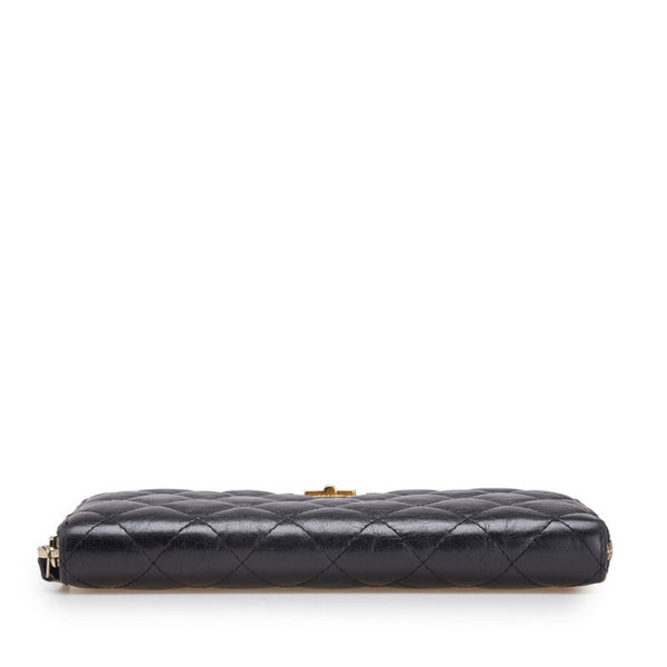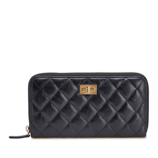 CHANEL 2.55 Matelasse Round Zip Long Wallet in Black Leather for Women