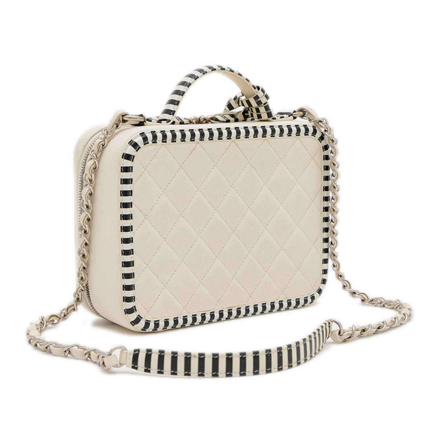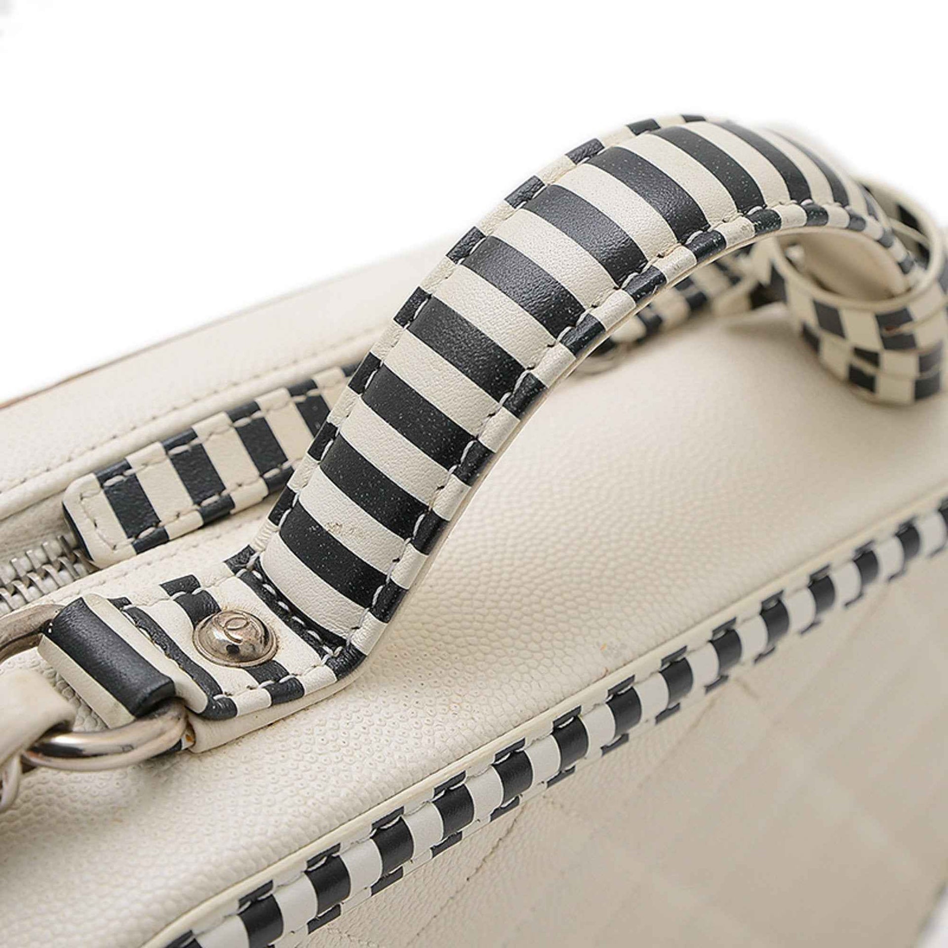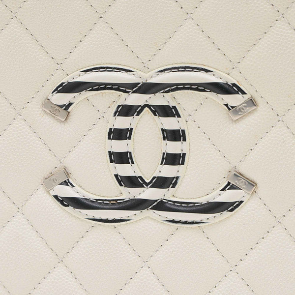 Chanel CC Filigree Vanity Handbag/Shoulder Bag in Caviar Leather, White and Black, A93343