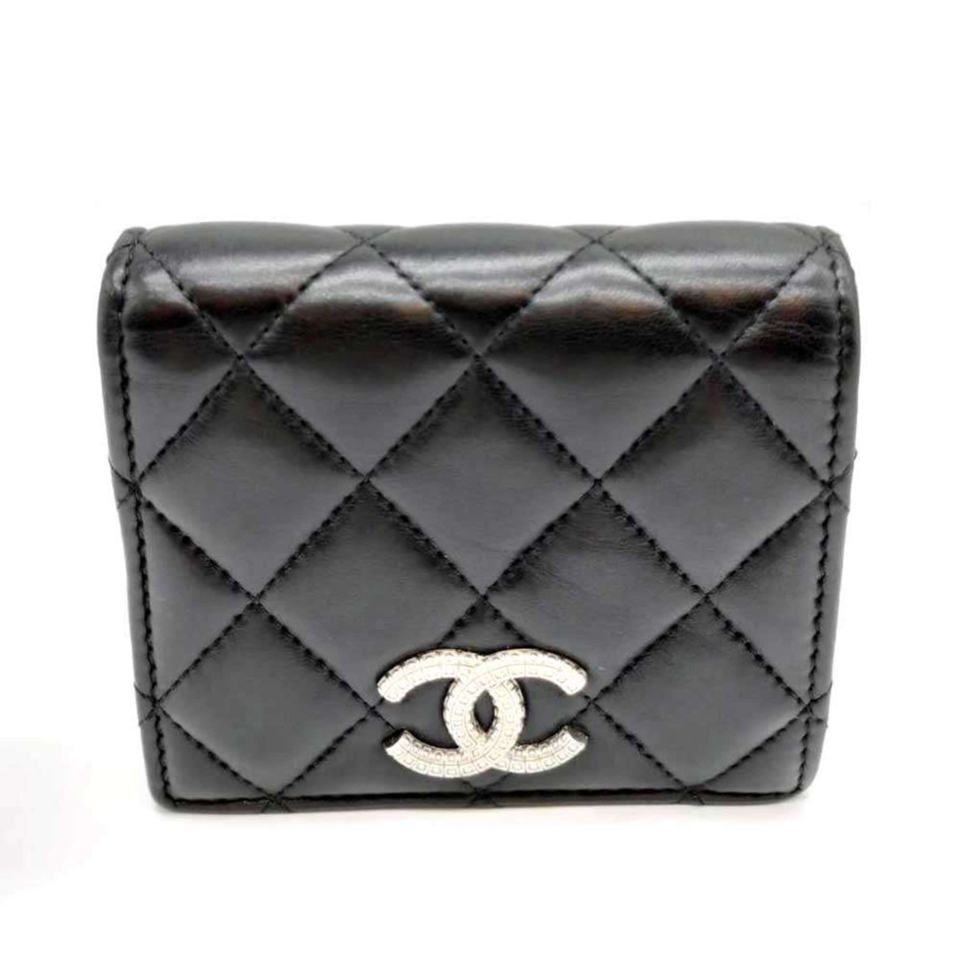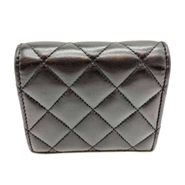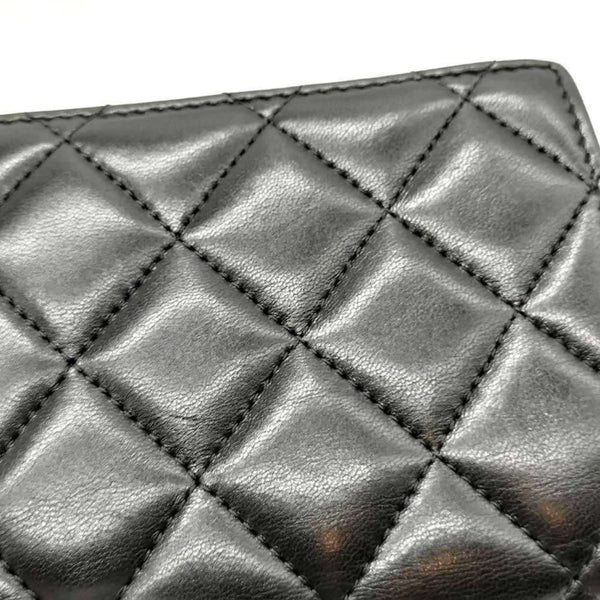 CHANEL Classic Small Wallet in Black Lambskin Leather with Matelasse Bifold for Women