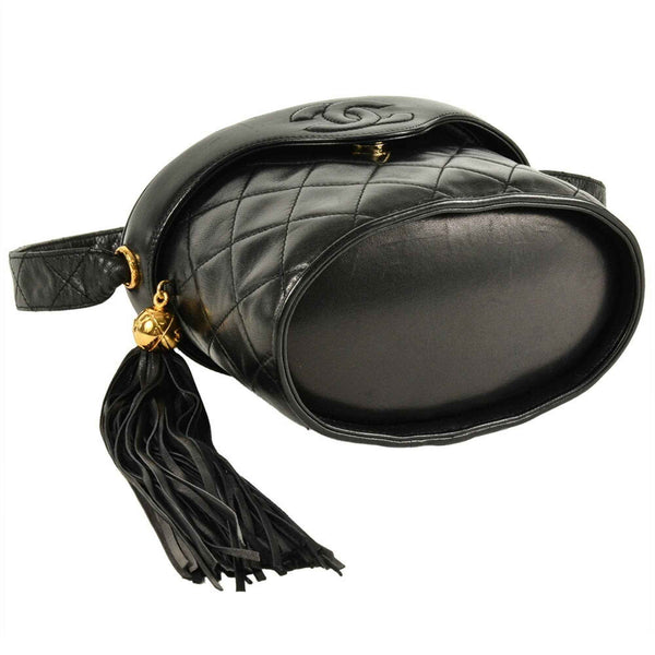 CHANEL Coco Mark Matelasse Tassel Shoulder Bag Lambskin Black