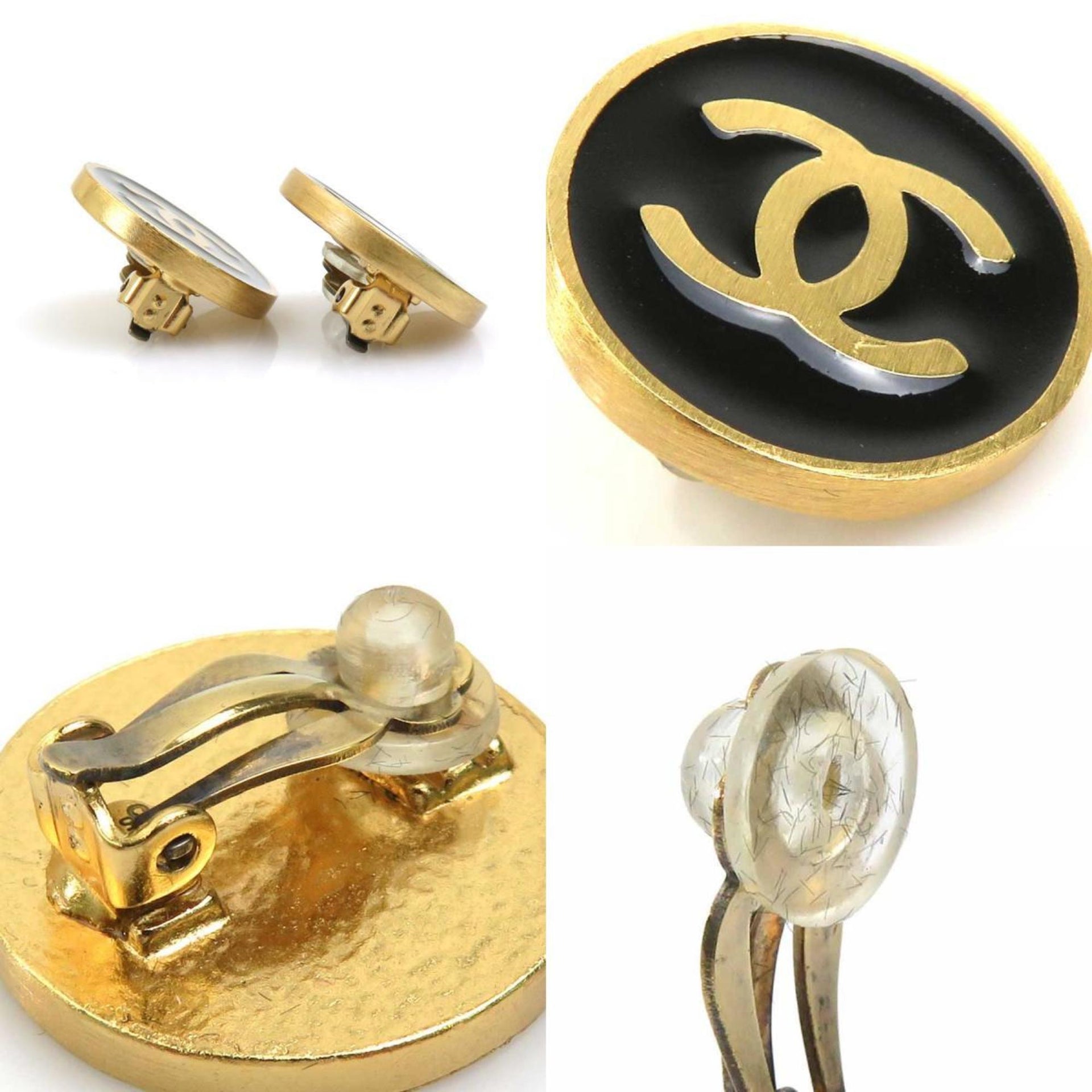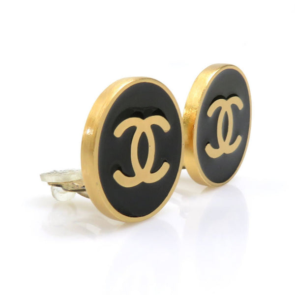 CHANEL Coco Mark Metal Enamel Earrings in Gold and Black for Women (e60746a)