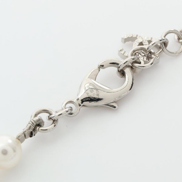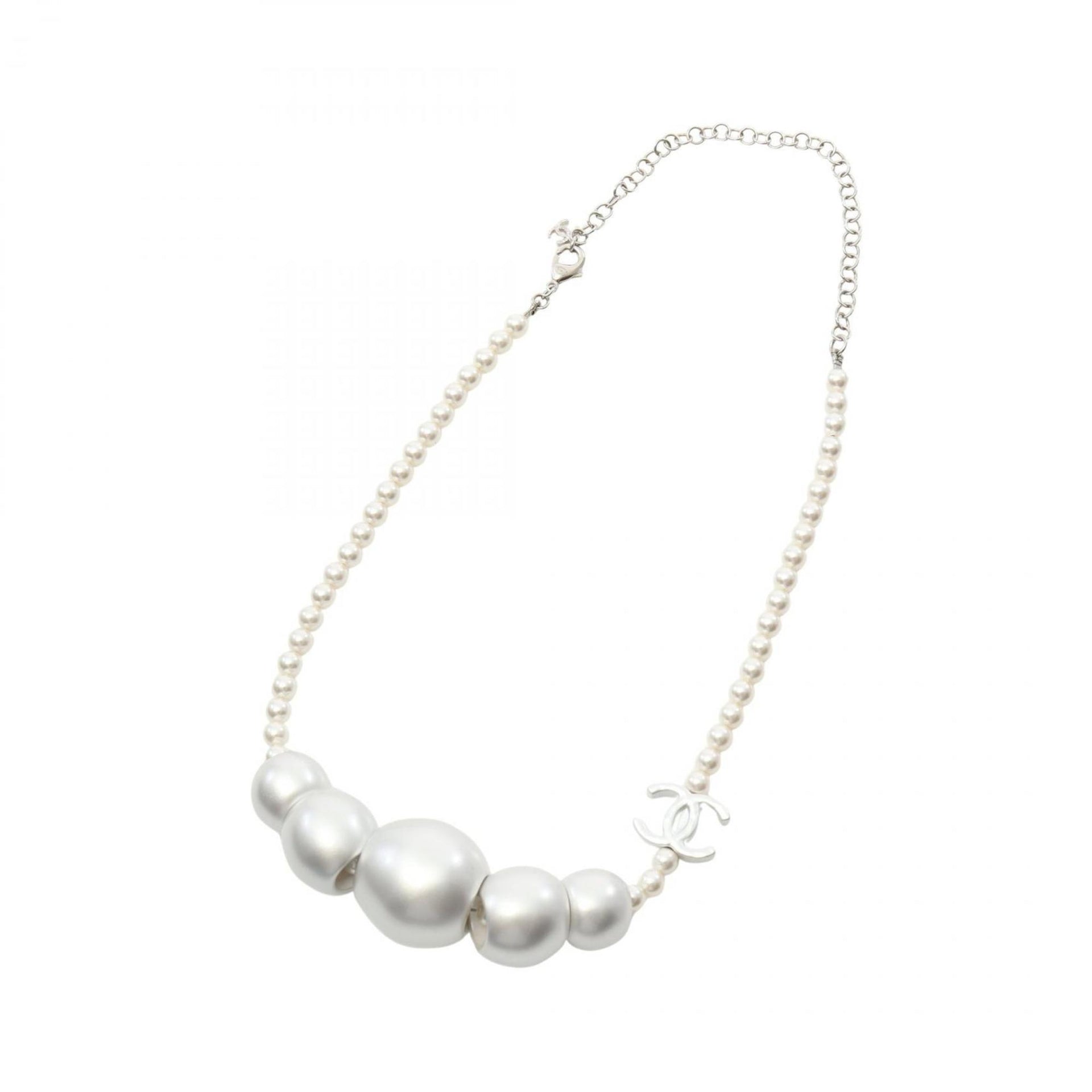 Chanel Coco Mark Necklace in Stainless Steel with Faux Pearls, Silver and Ivory, ABE925