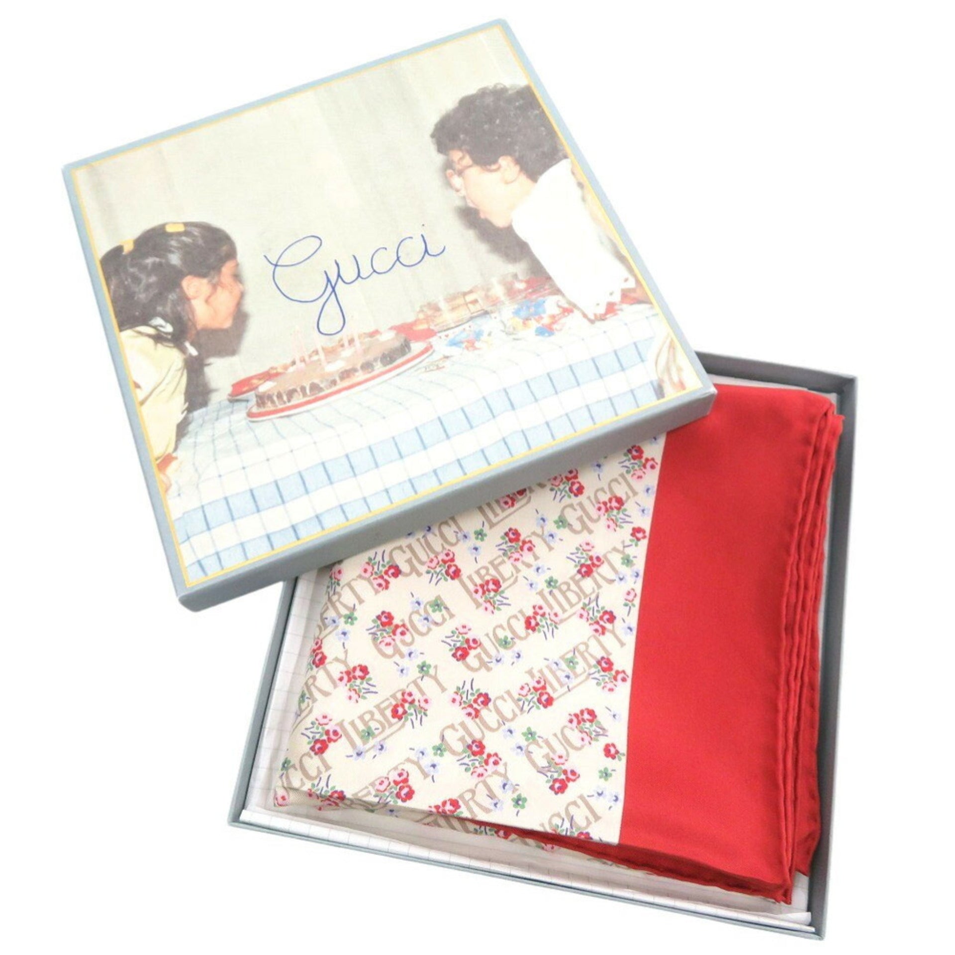 Gucci x LIBERTY Liberty Flower Print Silk Beige Red Scarf Muffler 1126GUCCI