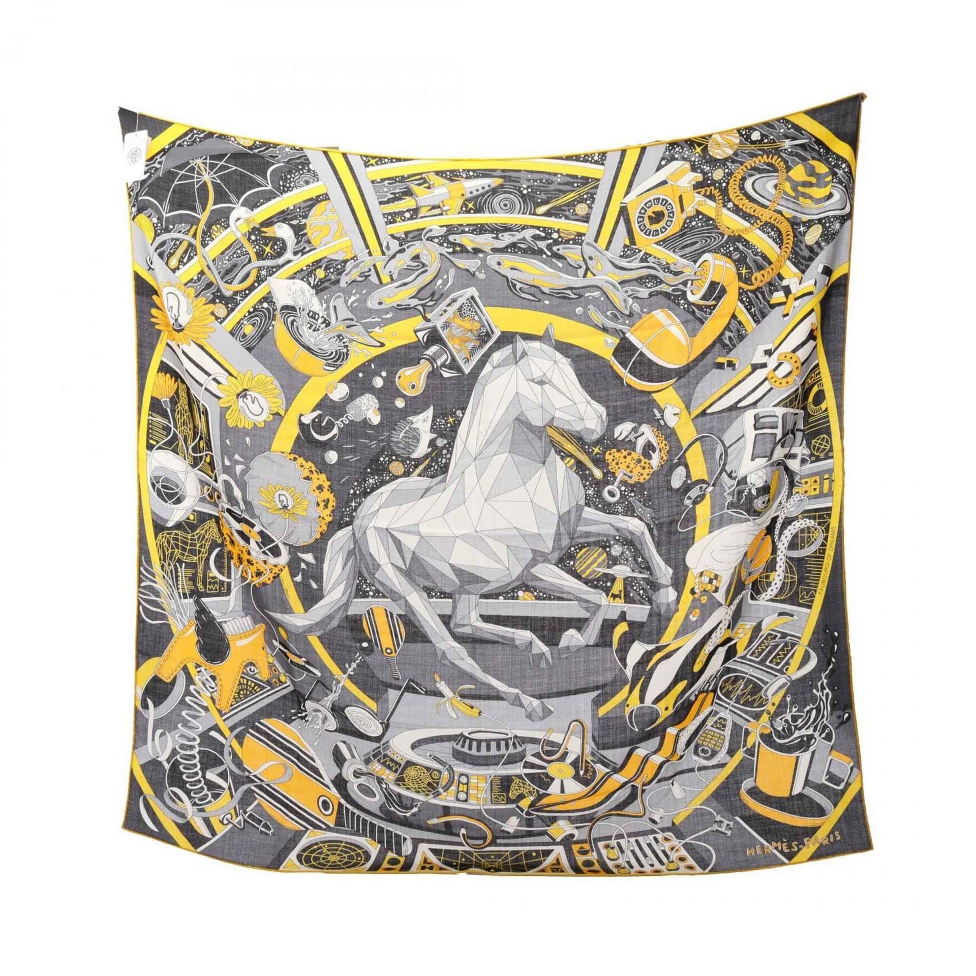 Hermès HERMES Carré 100 Faubourg of Dreams Scarf, Silk, Cashmere, Women\'s, Gray/Multicolor