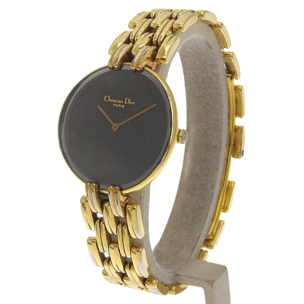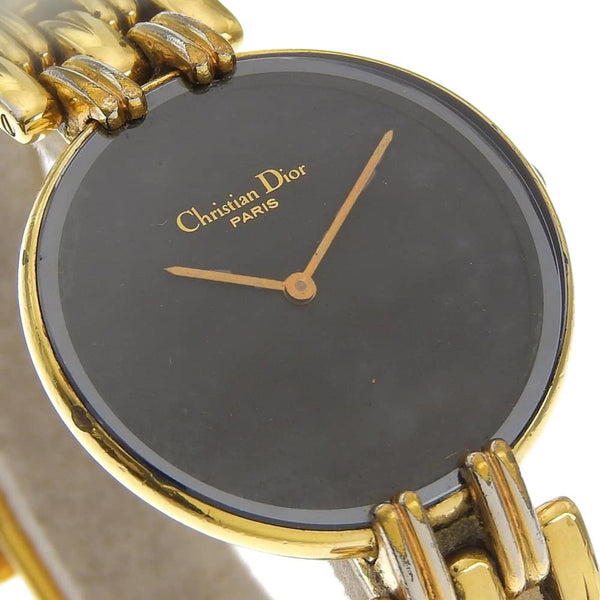 Christian Dior Bagira Watch 46.154 Gold-Plated Quartz Analog Display Black Dial Women\'s