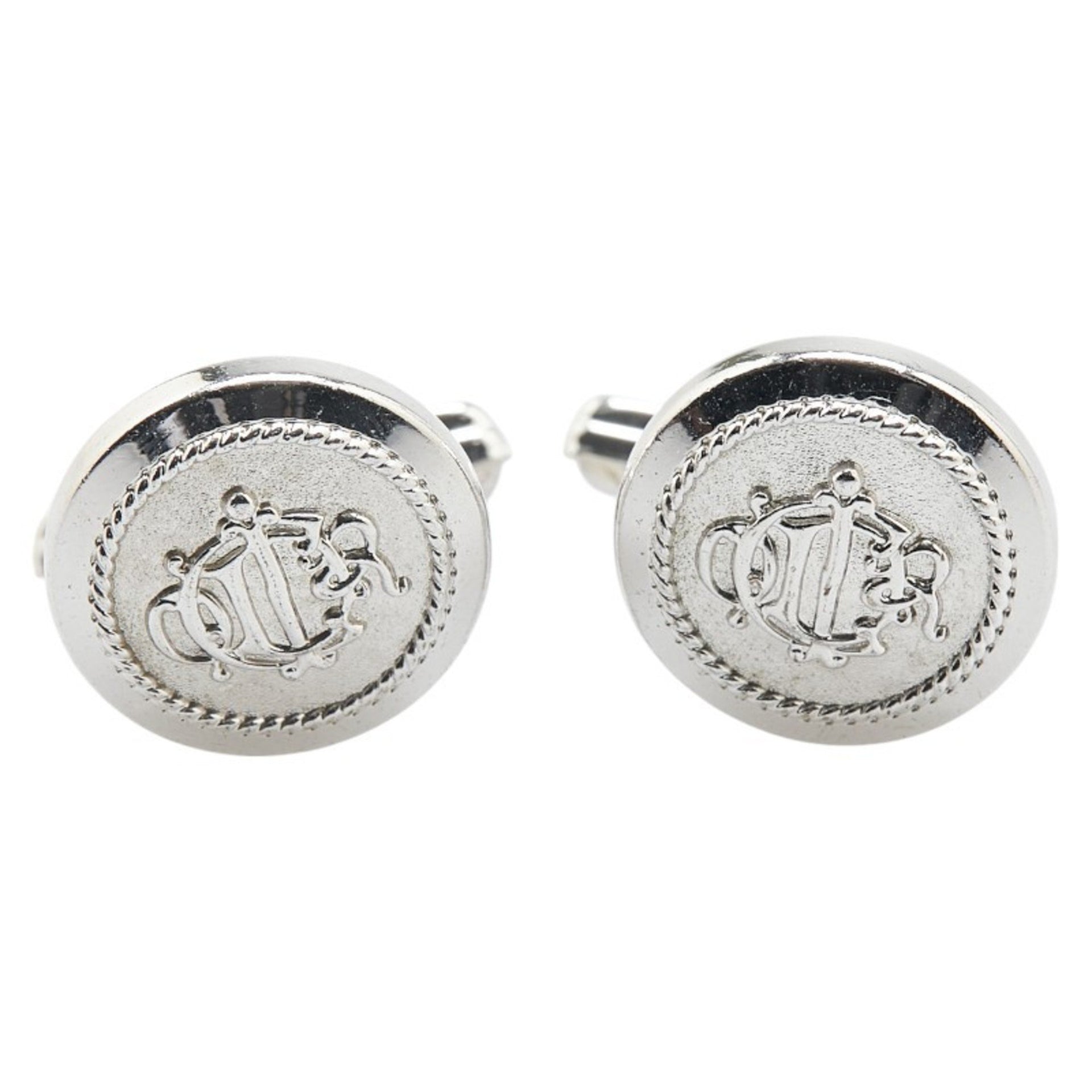 Christian Dior Dior logo cufflinks in silver metal for men.