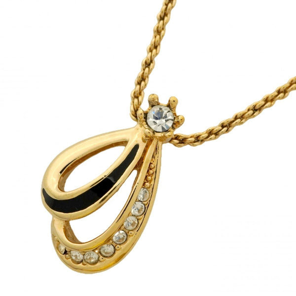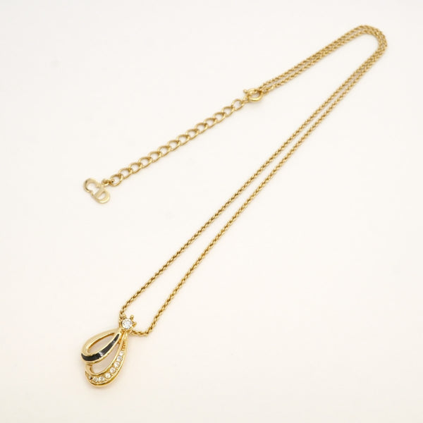 Christian Dior Necklace, GP Plated, Rhinestone, Gold, Black, Women\'s