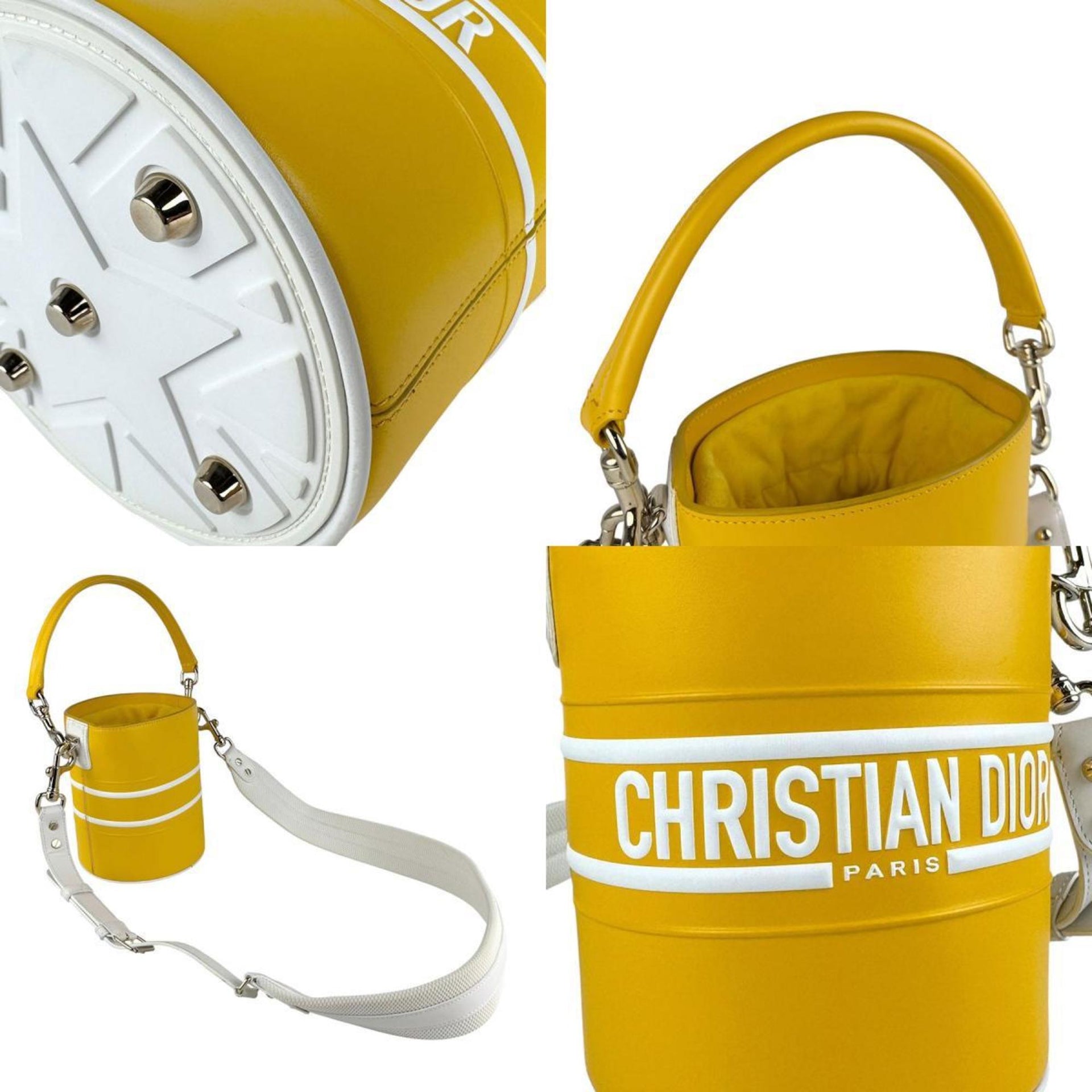Christian Dior Vibe Bucket Shoulder Bag/Handbag in Yellow and White Leather, Women\'s, z6652