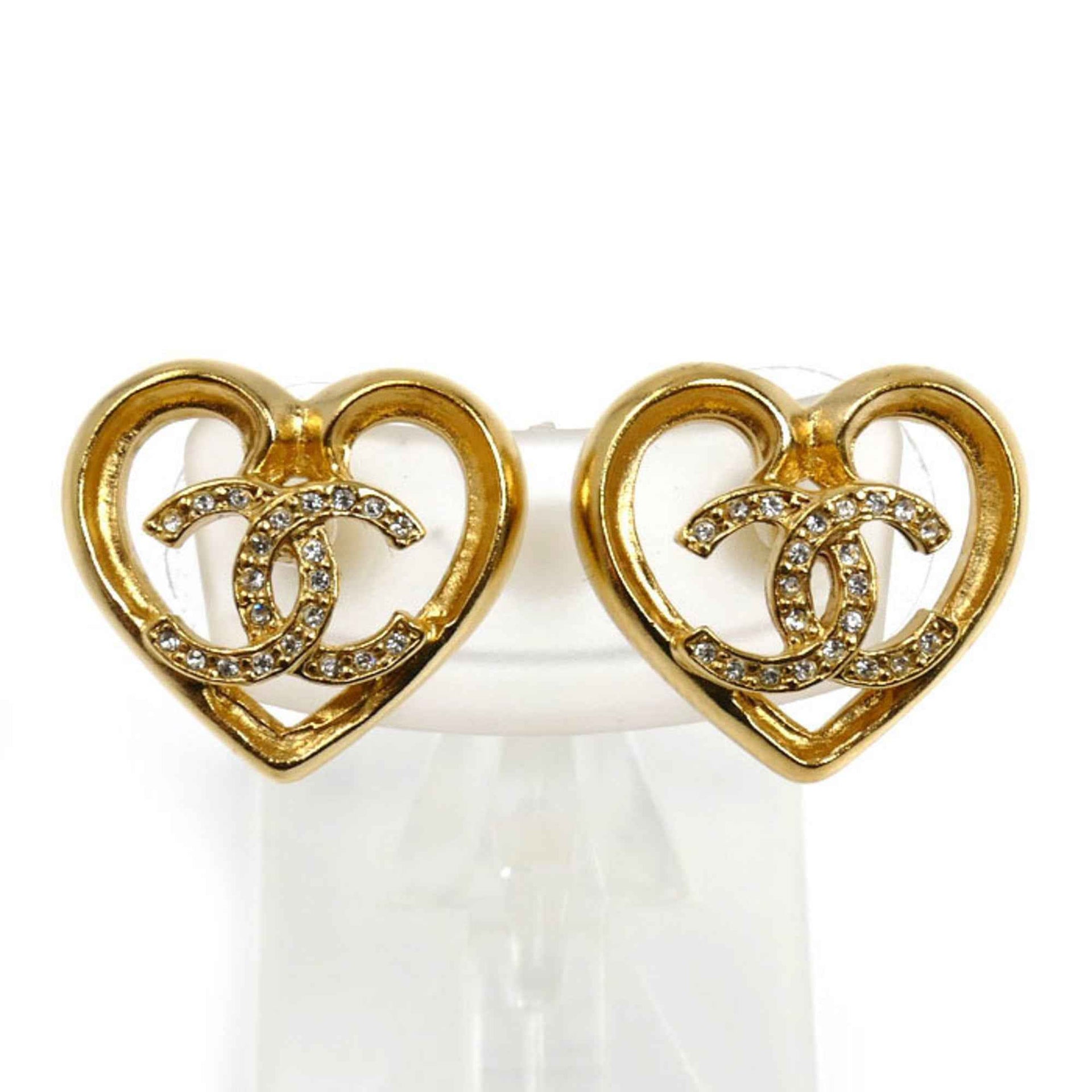 CHANEL Coco Mark Metal Strass Heart Earrings ABA103 Women\'s