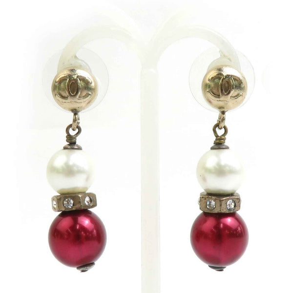 CHANEL Earrings Coco Mark Metal Faux Pearl Gold Off-White Burgundy Women\'s e60465g