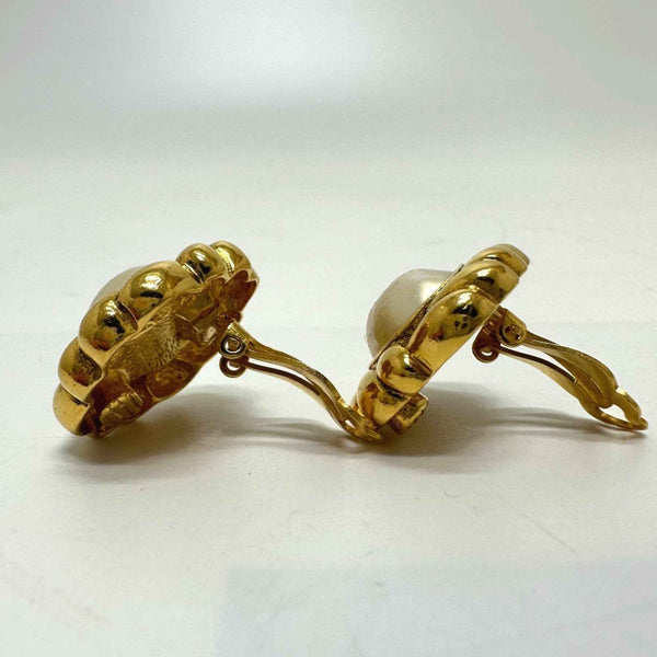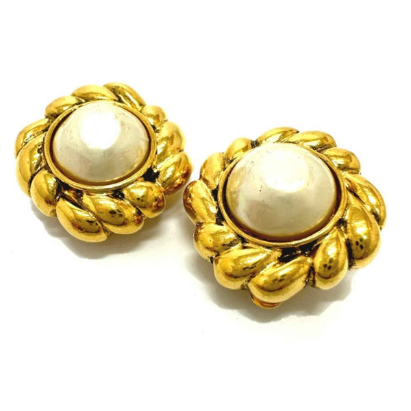 CHANEL Faux Pearl Earrings, Pearl/GP, Women\'s, Gold