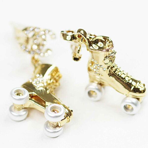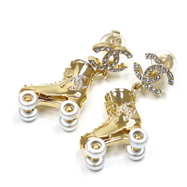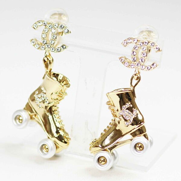 Chanel Roller Skate Earrings Metal Strass Gold/Silver C24C Coco Mark