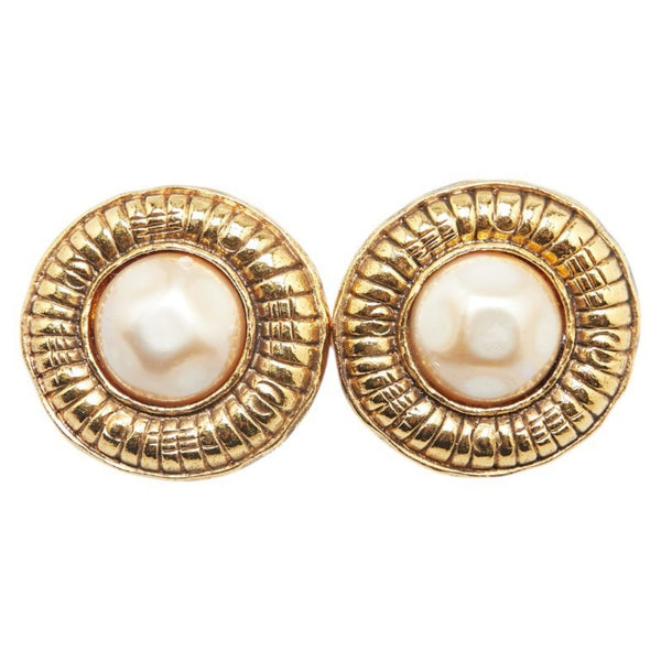 CHANEL Round Earrings, Gold Plated, Faux Pearl, Women\'s