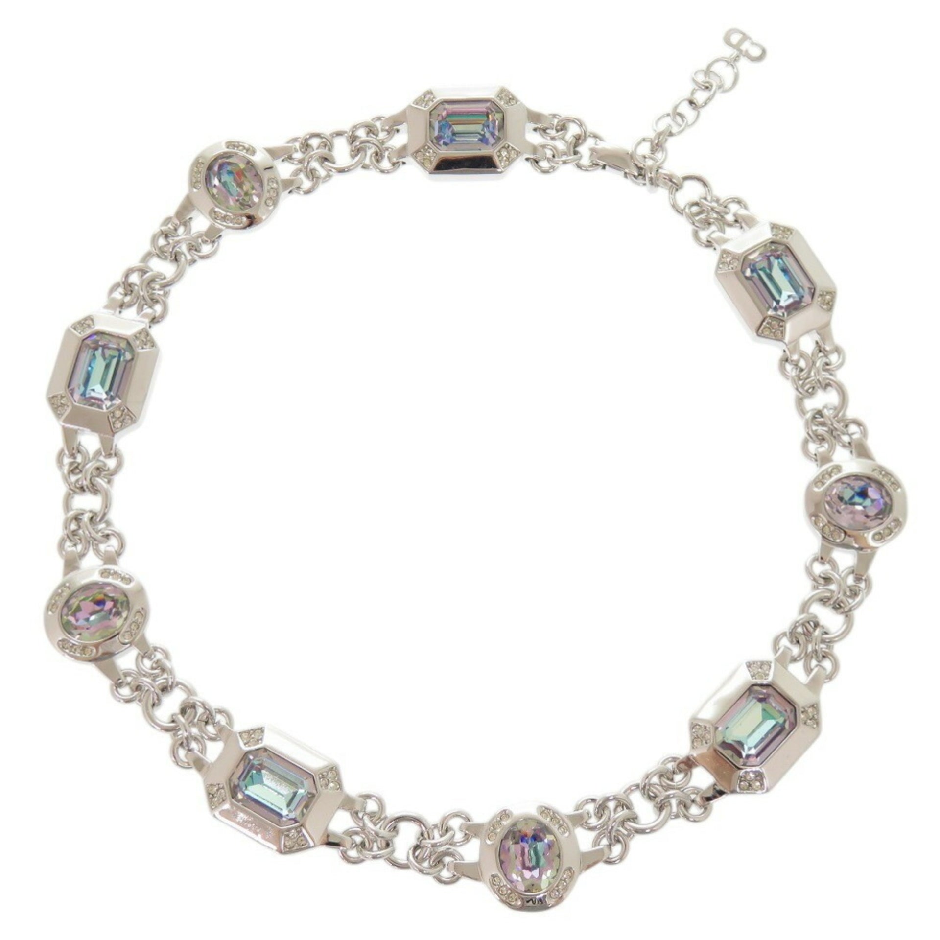 Christian Dior Metal Stone Silver Necklace Earrings 0757Christian