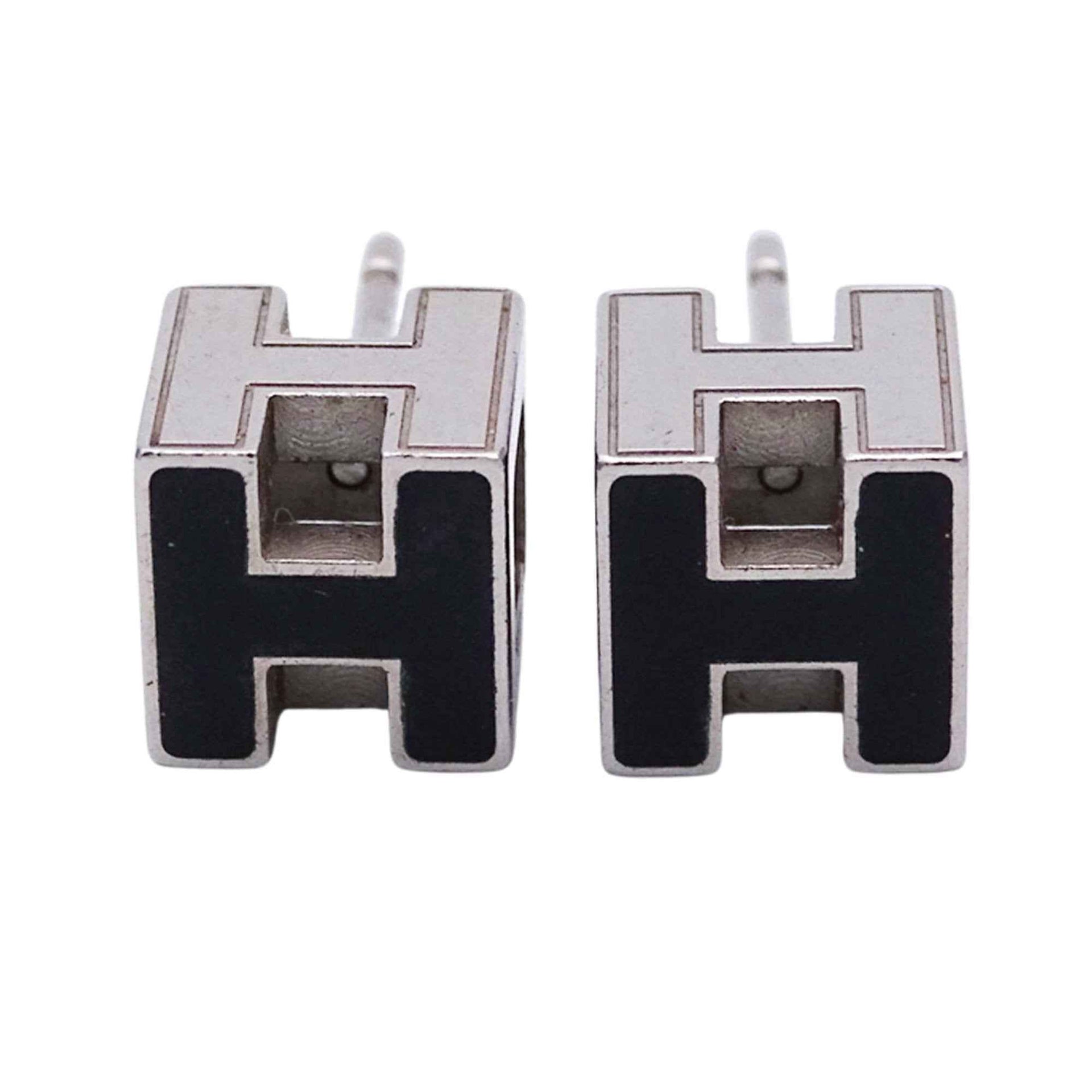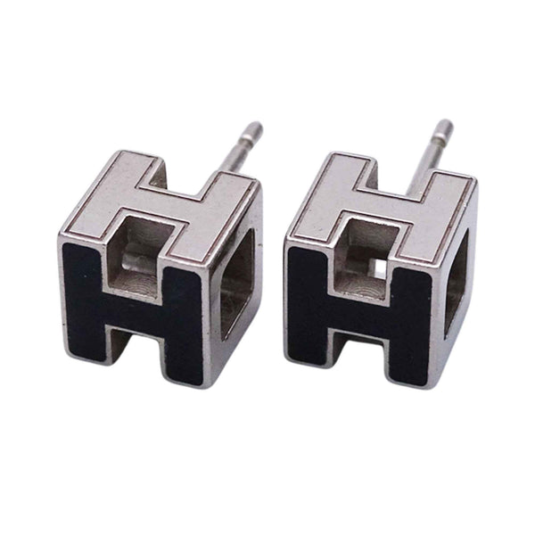 Hermès HERMES Earrings, Cage d\'Ache H Cube, Women\'s and Men\'s, Brand GP, Silver Black, Binaural, Logo